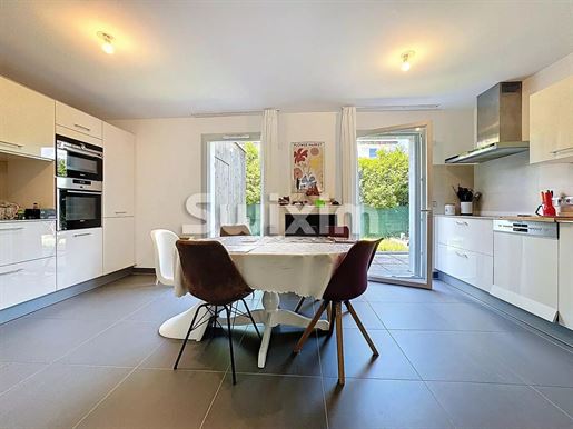 Le tout repose sur une parcelle de 800?m², avec un jardin entièrement clos, exposé Est, offrant une vue dégagée sur le Jura. Une terrasse couverte, attenante à la pièce de vie, permet de profiter de l'extérieur en toute saison. Trois places de stationnement sont disponibles devant la maison.