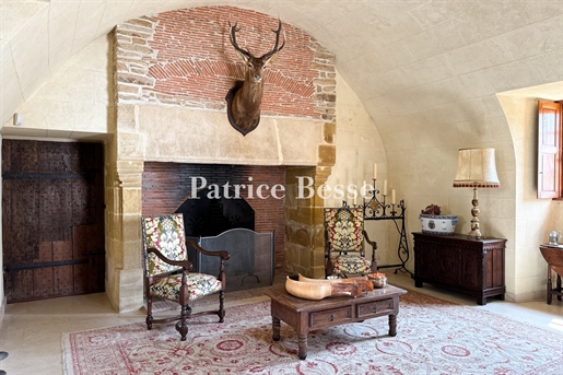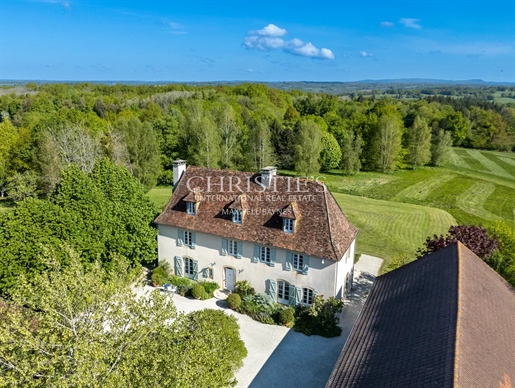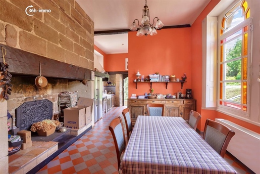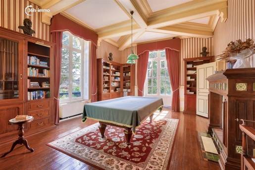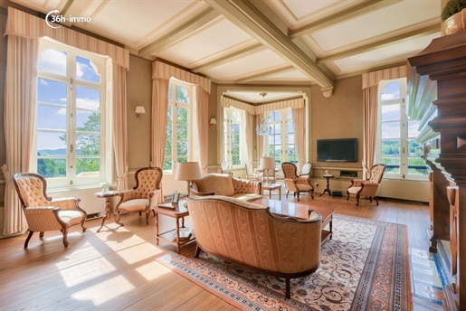 Les pièces de réception se succèdent dans une atmosphère de distinction : vaste salon parqueté, salle de billard élégante, salle à manger ouvrant sur un balcon dominant la campagne vallonnée, et une cuisine conviviale avec sa grande cheminée en pierre.