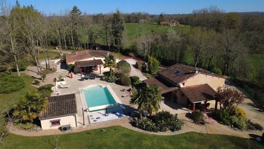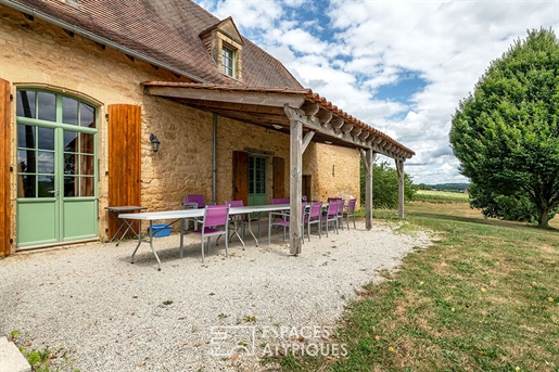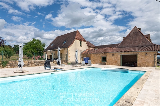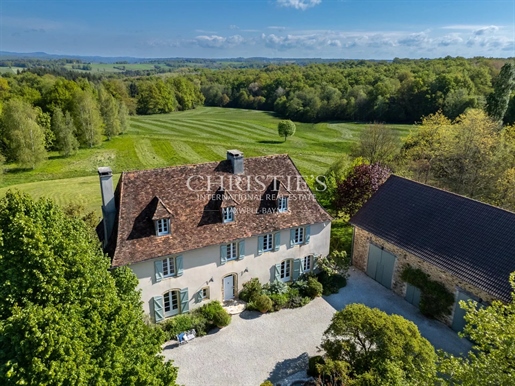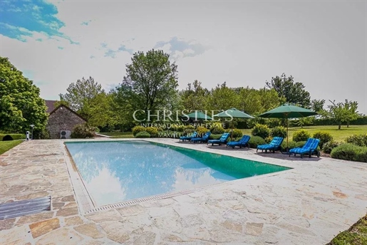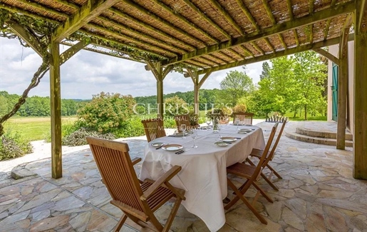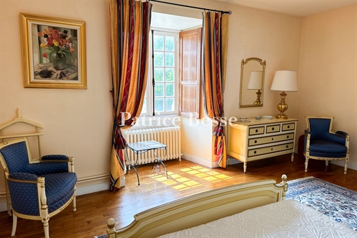 Le domaine de plus de 3 hectares (30 567 m²) est un havre de paix, planté de chênes centenaires, platanes et séquoias majestueux. Depuis la terrasse plein sud et la piscine d’eau salée (10 x 5 m), la vue panoramique s’étend sur les collines verdoyantes de la Corrèze, offrant un décor d’une rare sérénité.