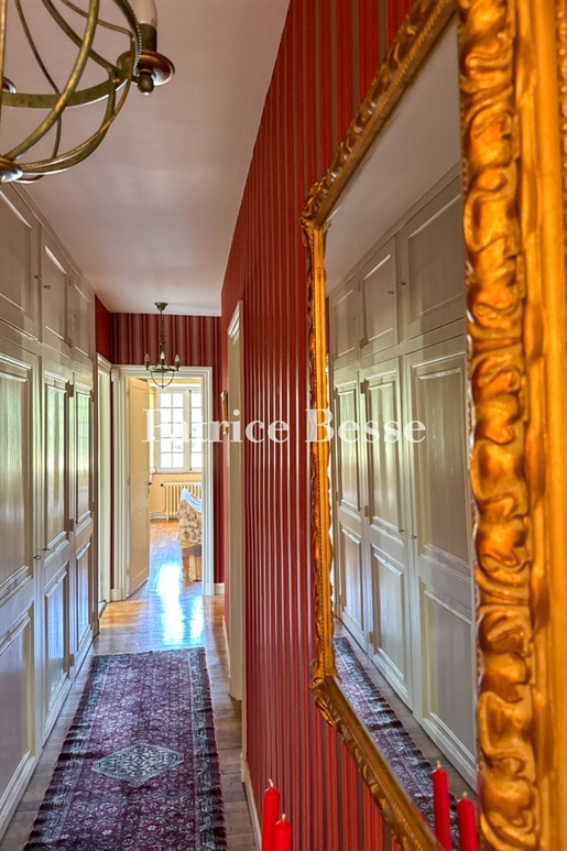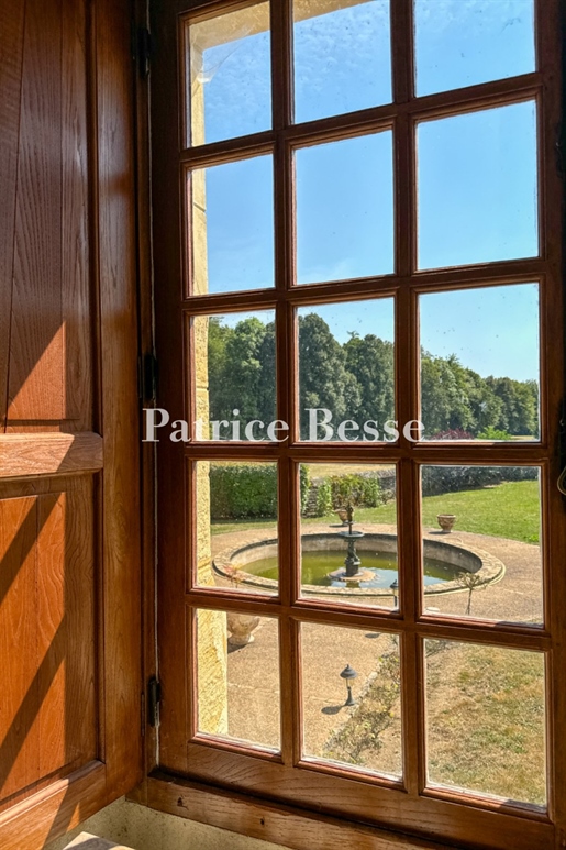 Derrière sa façade harmonieuse, le château dévoile de magnifiques volumes, des plafonds hauts, des cheminées d’époque et de grandes fenêtres baignant chaque pièce de lumière.