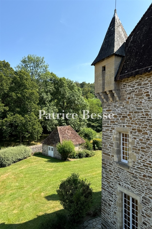 À quelques minutes du charmant village de Perpezac-le-Blanc, entre Brive et le Périgord, se dresse le Château du Bois Noir, une demeure du Xixᵉ siècle au cœur d’un écrin de verdure préservé. Ce joyau architectural de près de 500 m² habitables, entièrement restauré dans le respect de son histoire, marie aujourd’hui l’élégance d’antan et le confort contemporain dans un environnement privé et paisible.