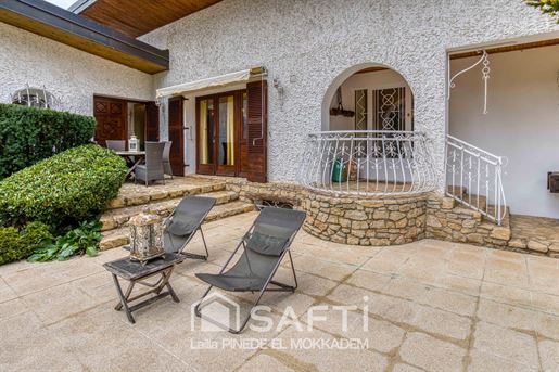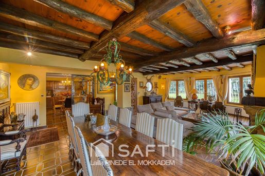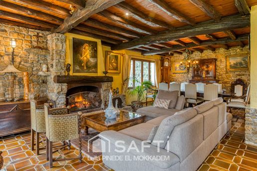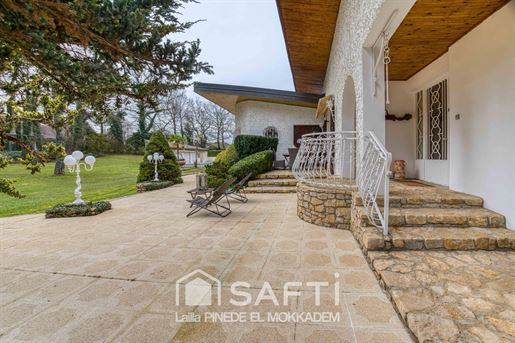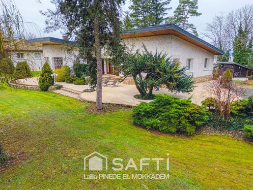 Si vous êtes sensibles aux demeures de caractère, façonnées avec des matériaux nobles, authentiques, et que vous recherchez un bien qui se distingue réellement… cette propriété saura vous séduire. Située dans un environnement calme et verdoyant, elle offre un cadre de vie unique, où charme, qualité et confort se rencontrent harmonieusement. Dès l’entrée, vous serez immédiatement captivé par la pièce maîtresse de la maison : un salon magnifique, où règne une atmosphère chaleureuse. Les poutres apparentes, la pierre, le poêle et la superbe cheminée créent un ensemble harmonieux, élégant et plein de caractère. Ce vaste salon, intégrant un espace salle à manger, bénéficie également d’une ouverture directe sur la terrasse, tout comme la cuisine, permettant de profiter pleinement du jardin et de la luminosité extérieure. La grande cuisine, conviviale et lumineuse, dotée d’un espace repas, communique elle aussi directement avec la terrasse, idéale pour les moments en extérieur. La porte principale, soignée et élégante, mène à une belle entrée desservant : quatre chambres, une salle de bain, et des toilettes. Une seconde entrée facilite également les circulations internes. Une belle terrasse en pierre, idéalement exposée, offre un espace privilégié pour profiter des beaux jours, des repas en famille, ou simplement d’un moment de détente. Elle domine et prolonge naturellement le regard vers le joli parc arboré de 4 000 m², créant une continuité parfaite entre la maison et la nature environnante. Au rez-de-jardin, vous trouverez : deux garages en enfilade, des dépendances, une buanderie, un atelier, une cave ainsi qu'une pièce supplémentaire à aménager selon vos envies (salle de cinéma, salle de jeux, salle de sport…). À l’extérieur, la maison s’ouvre sur un splendide parc arboré de 4 000 m², véritable havre de paix. Les arbres, soigneusement entretenus, composent un décor harmonieux et plein de charme. La propriété est très discrète, parfaitement intégrée dans son environnement naturel, offrant une intimité rare et une ambiance sereine dès les premiers instants. Un bien unique, authentique et rare sur le marché, où chaque détail témoigne d’un réel souci de qualité. Pour plus d’informations ou pour organiser une visite, je suis à votre disposition. Les informations sur les risques auxquels ce bien est exposé sont disponibles sur le site Géorisques : Prix de vente : 516 000 € Honoraires charge vendeur Contactez votre conseiller Safti : Lailla El Mokkadem Pinede, Tél. : , E-mail : - Ei - Agent commercial immatriculé au Rsac de Bourg-En-Bresse sous le numéro 830 100 517