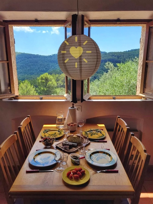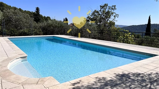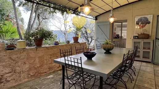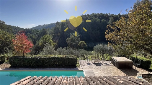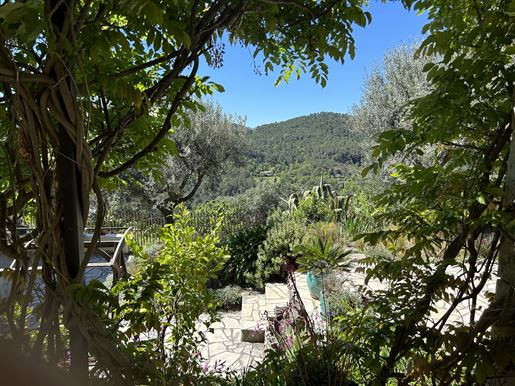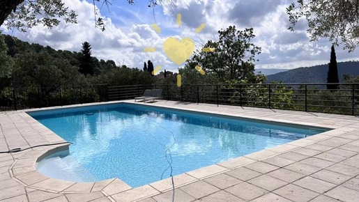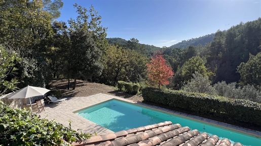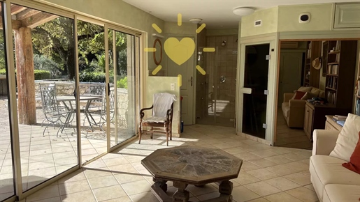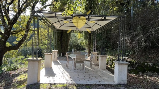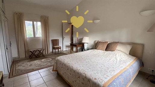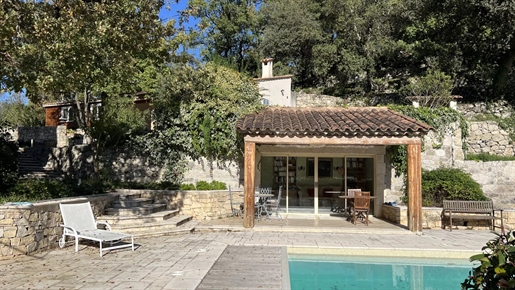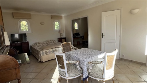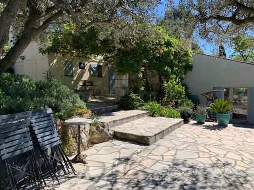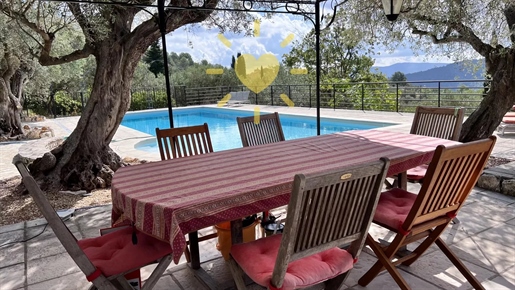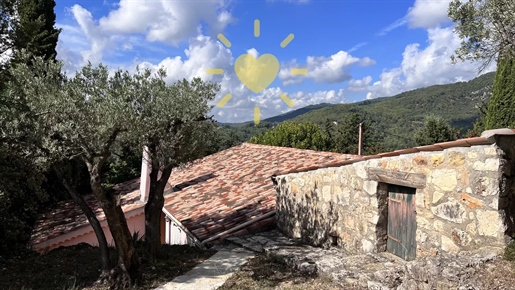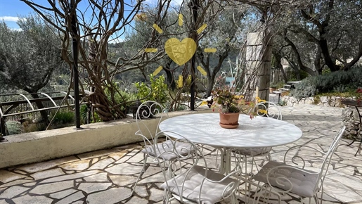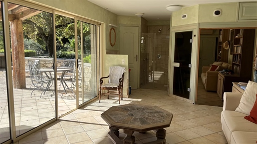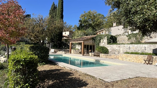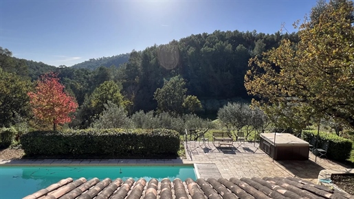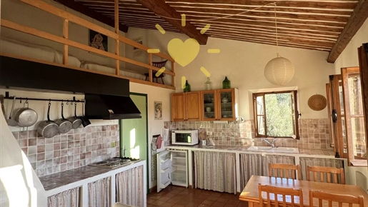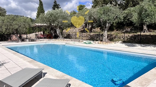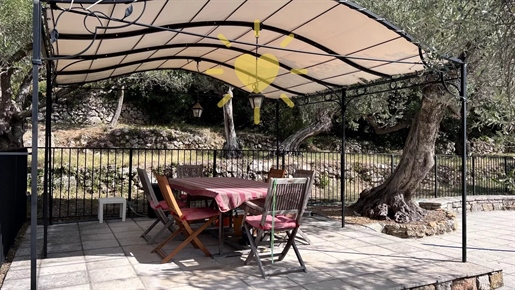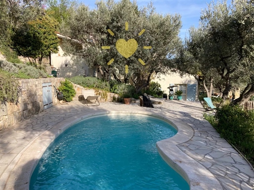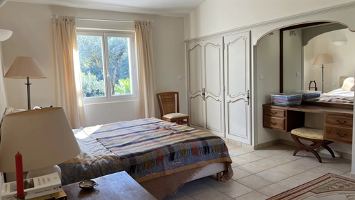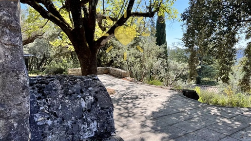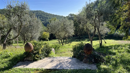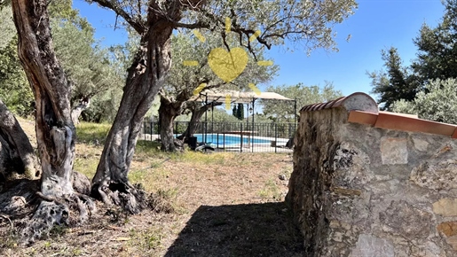 On 2 hectares of land with olive groves, property comprising a 205 m2 villa, a 55 m2 stone Mazet, a 25 m2 chalet, a 33 m2 swimming pool with pool house and a 15 m2 stone garden shed. Garages and various outbuildings.
