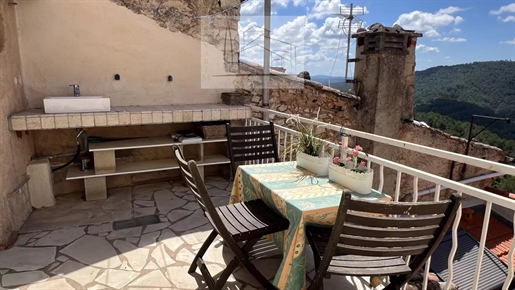 Living room with fireplace, fitted kitchen, bedroom, shower room with Wc, covered terrace.