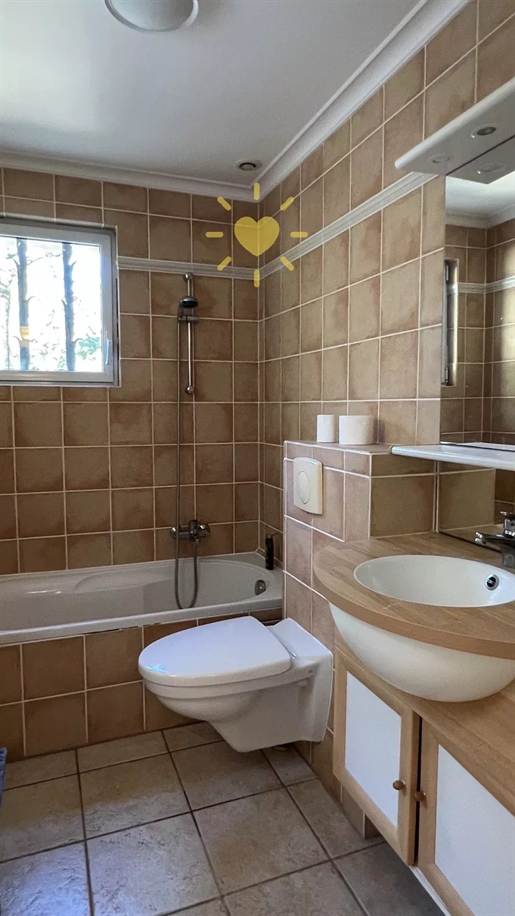 Ground floor: entrance, separate Wc, 33 m2 lounge with fireplace, dining room, fitted kitchen, utility room/storeroom, 22 m2 bedroom with bathroom/WC, 40 m2 bedroom, 10 m2 study, dressing room, bathroom with shower and WC.