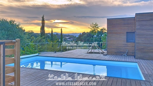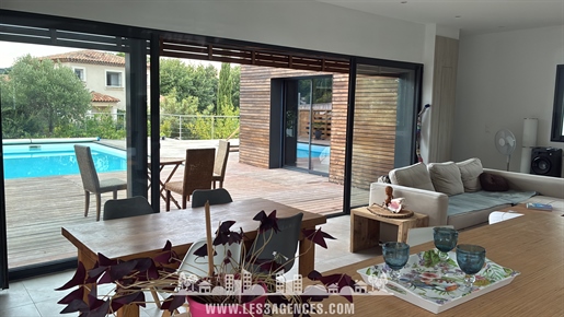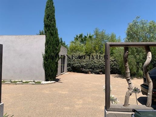 Située aux portes du Golfe de Saint-Tropez, à Cogolin, cette propriété contemporaine de 390m² de plain pied comprenant l'édifice principal ses annexes construites en 2012 s'élèvent sur un magnifique terrain paysager de 2 000 m².
