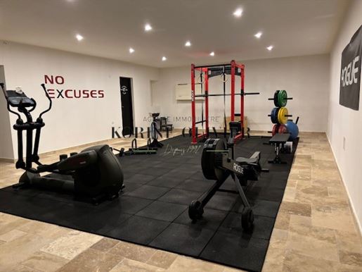 Au sous- sol, une salle de sport avec aération et climatisation de 60m² vous acceuille, ainsi qu'un espace de 15m² pour une cave à vin.