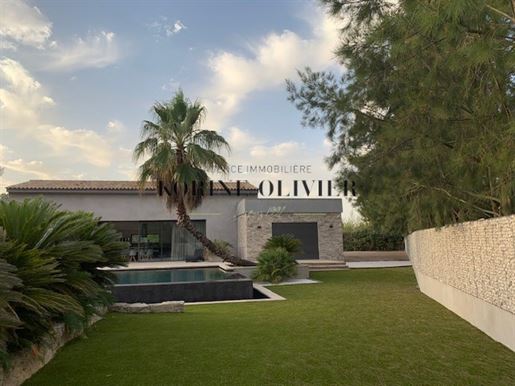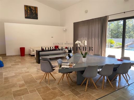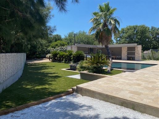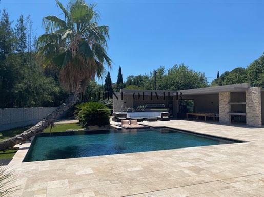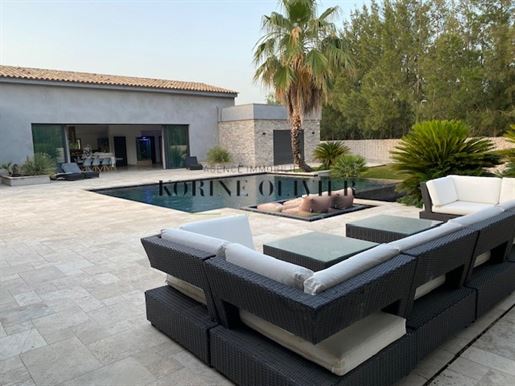 Located at the gateway to the Gulf of Saint-Tropez, in Cogolin, this contemporary single-storey property of 390 sqm, built in 2012 with its annexes, sits on a beautifully landscaped 2,000 sqm plot.