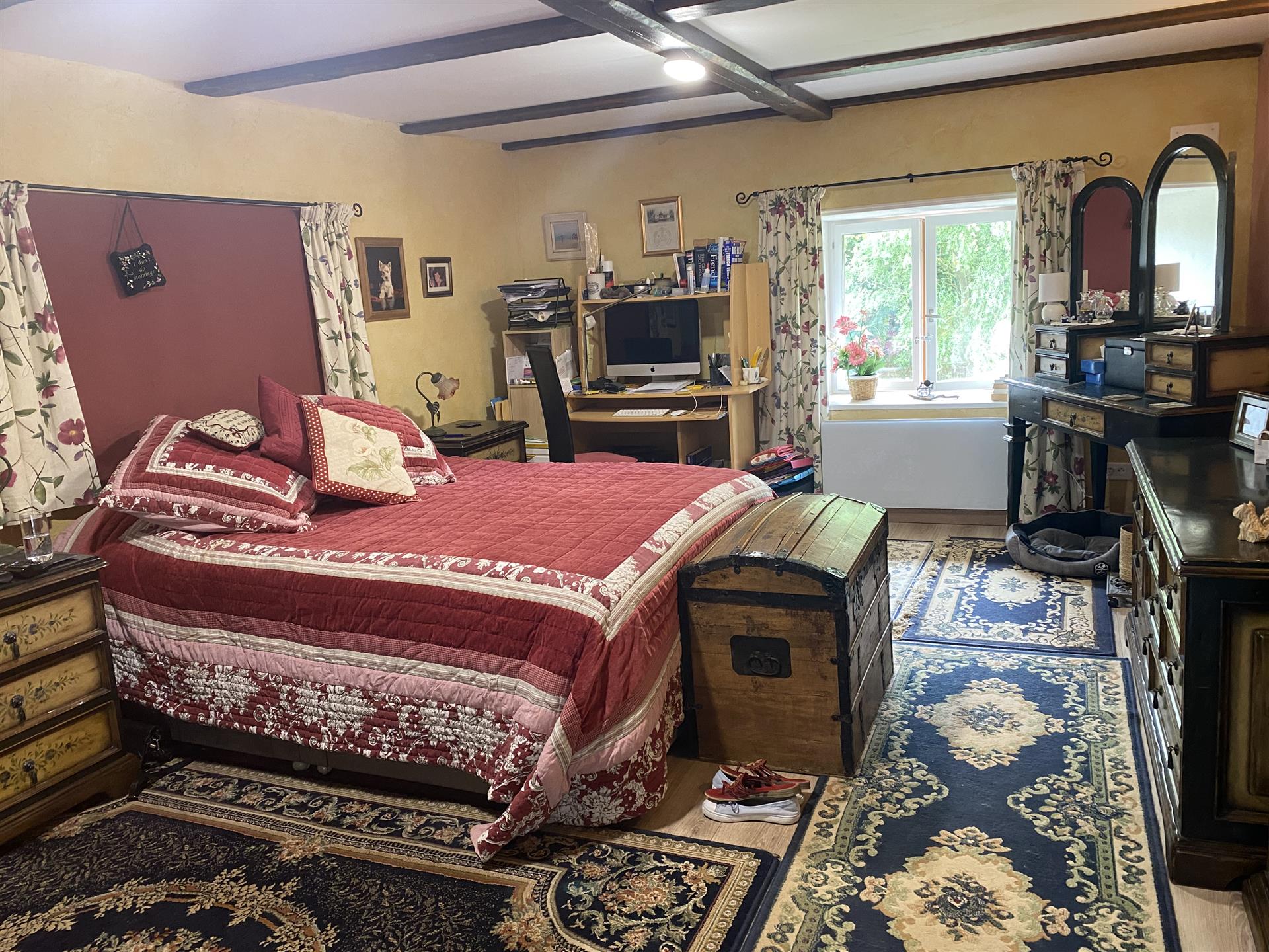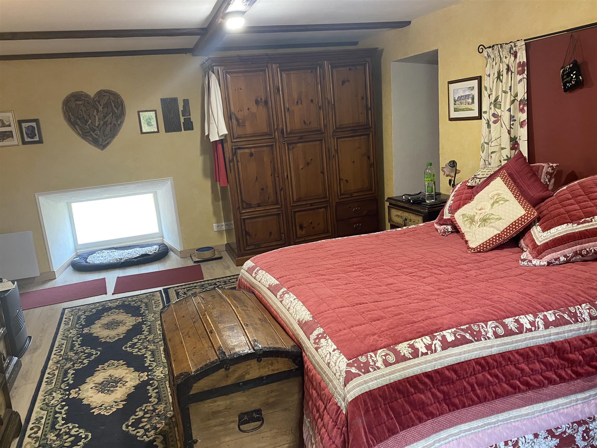 o Chambre 4 (5.63 x 4,45 m) avec une fenêtre donnant sur le jardin et une porte donnant vers l’extérieur permettant aux visiteurs d’accéder directement au gîte, radiateur,