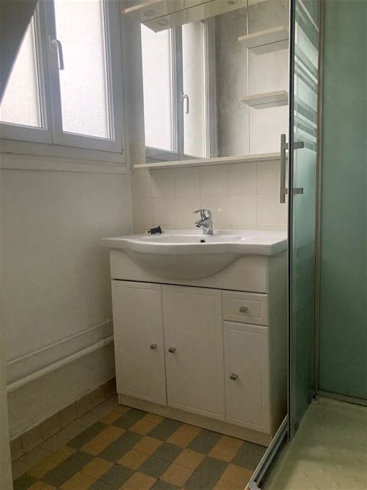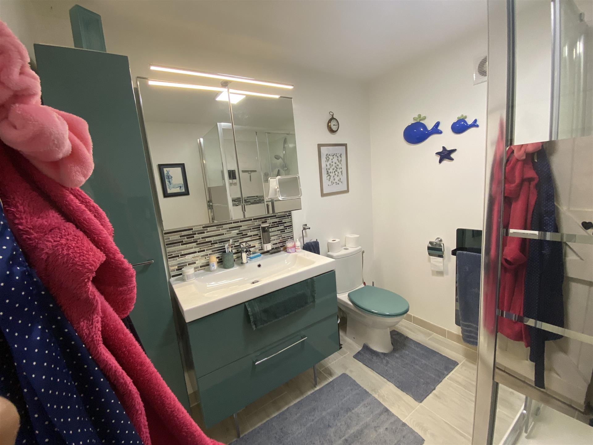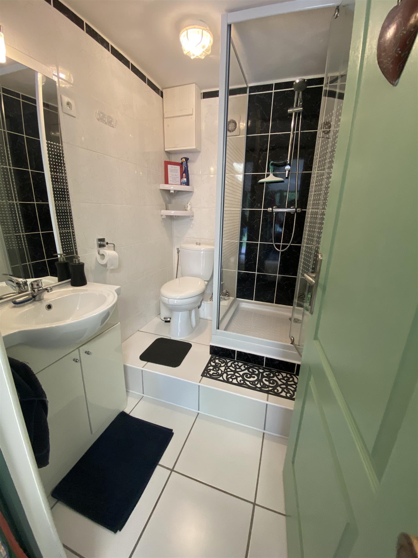 - Salle d’eau attenante à chambre 2 (2.27 m x 2.28m) – comportant Wc, cabine de douche, lavabo et porte-serviettes.