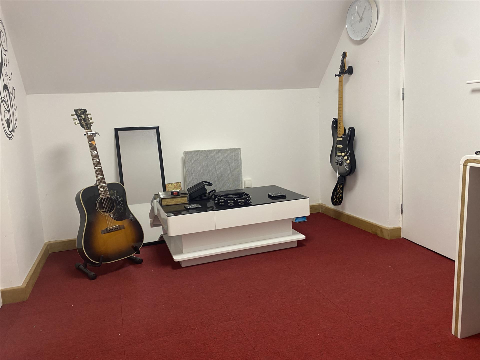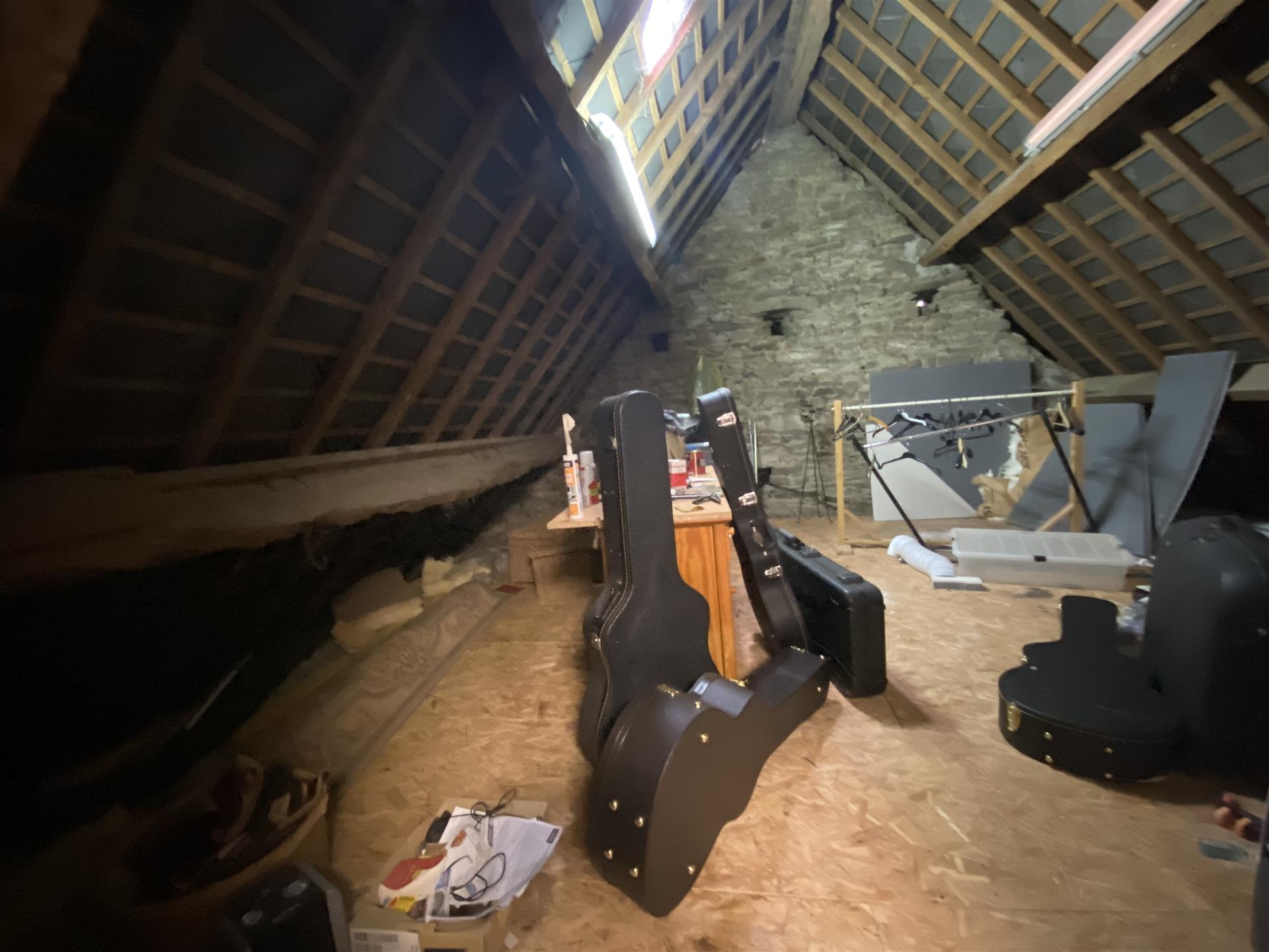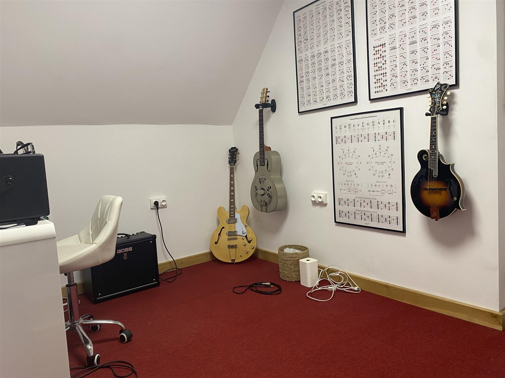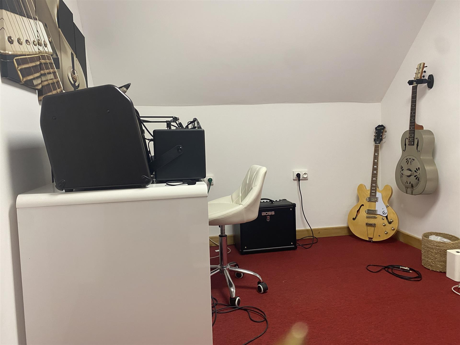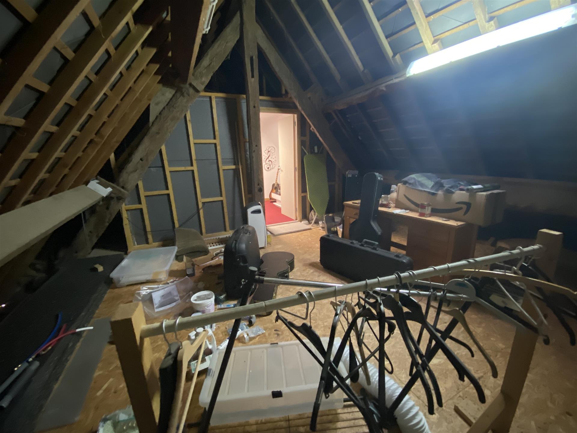 - Salle de musique avec isolation phonique (2,89 m x 2,43 m), toiture mansardée.