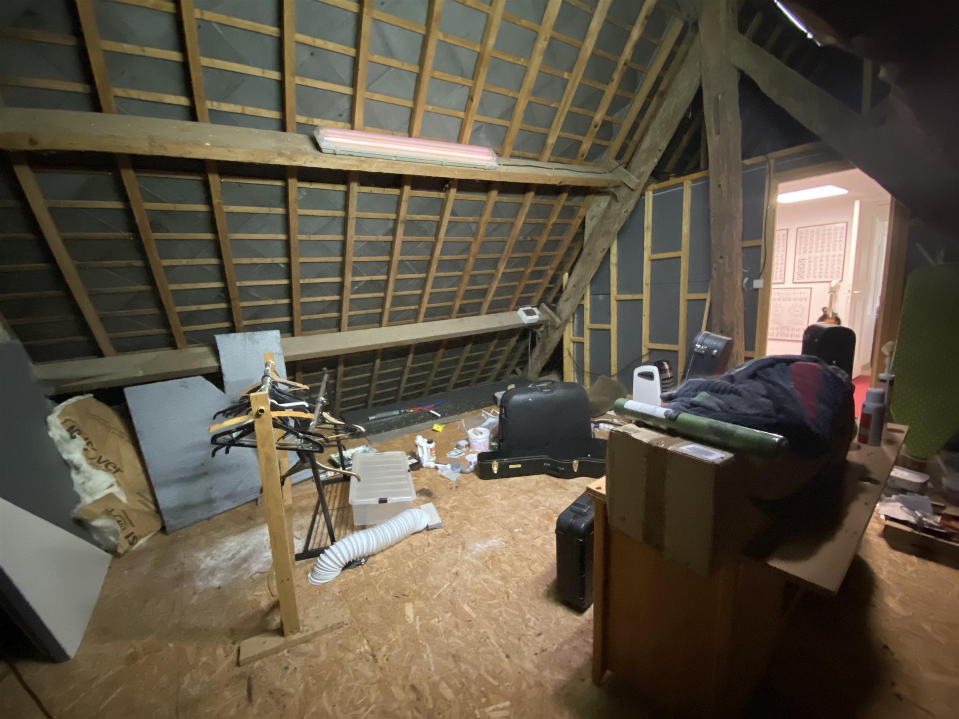 - Tout au bout, grenier (3,41 m x 4,54 m) – toiture mansardée.