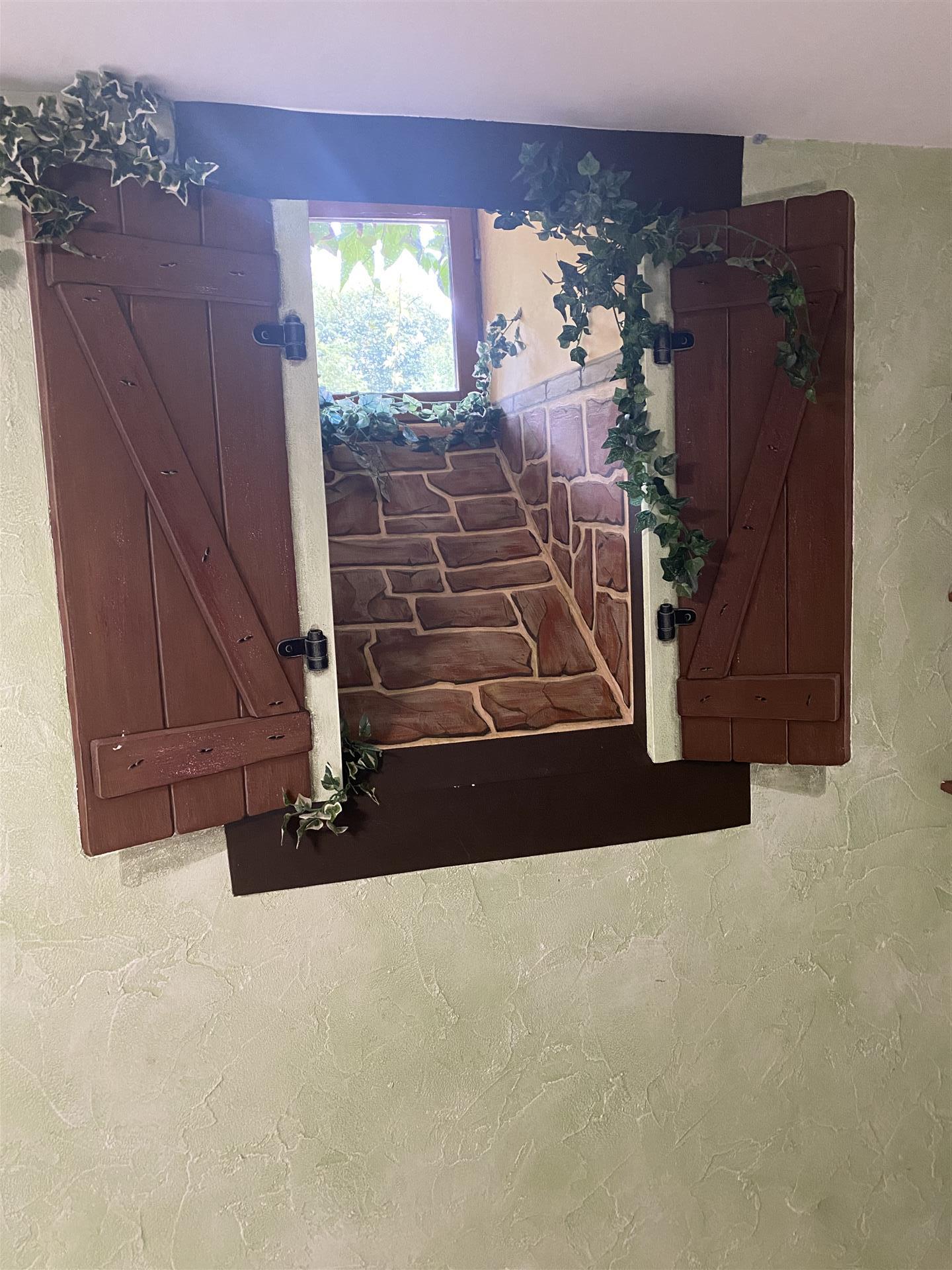 o Salle à manger (2,87 m x 3,00 m) -trompe l’œil peint par la propriétaire autour de la fenêtre.