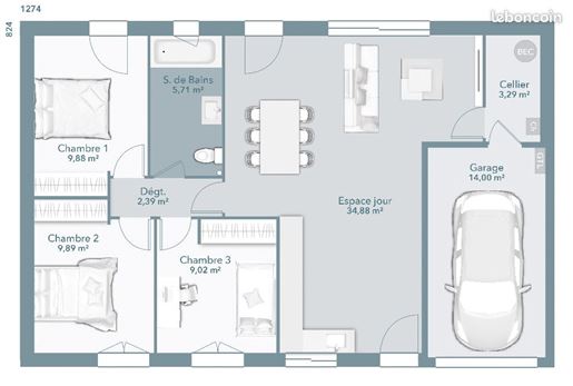 Projet de construction d'une maison 128 m² avec terrain à Corbarieu (82) au prix de 366868€ Corbarieu – Maison Pierre De Soleil. Dans un quartier calme, à la fois très bien exposé mais aussi proche des commerces et services, cette parcelle de notre partenaire foncier, sous réserve de disponibilité, de 1400 m², pourrait accueillir votre projet ! Villas et Maisons de France, constructeur régional expérimenté et avec un process de haute qualité environnementale, est spécialiste de la maison éco responsable sur-mesure. La Maison Pierre de Soleil, d'une superficie de 128m², incarne la fusion élégante du design contemporain et de la fonctionnalité. Cette somptueuse maison à étage comprend 2 chambres, dont un bureau/atelier pour les âmes créatives, ainsi que deux élégantes suites parentales. Au rez-de-chaussée, deux salles de douche offrent un confort inégalé, tandis qu'à l'étage, une salle de bains crée un espace de relaxation ultime. La pièce de vie, spacieuse, avec ses 43m², devient le cœur de la convivialité et du repos. Les larges baies vitrées s'ouvrent sur une superbe terrasse de 48m², vous invitant à profiter de l'air frais en toute quiétude. De plus, un garage de 28m² vous offre un espace sécurisé pour vos véhicules et vos effets personnels. La Maison Pierre de Soleil combine harmonieusement la fonctionnalité et l'esthétique, créant un cocon lumineux et confortable pour une qualité de vie inégalée. Certifié Properméa et avec un process de haute qualité environnementale, Villas et Maisons de France s'engage à réduire l'empreinte carbone de votre projet. Nous garantissons et contrôlons la conformité avec la Re 2020, l'étiquette énergie A, ainsi que la qualité du traitement de l'étanchéité à l'air, le tri sélectif et la valorisation des déchets. Votre interlocuteur dédié vous accompagnera dans toutes les étapes de votre projet, que ce soit pour le financement, l'obtention du permis de construire, ou l'acte authentique d'acquisition du terrain. Dès le début de votre chantier, suivez en temps réel et en images l'avancement de vos travaux grâce à votre Espace Client Privilège. Notre Contrat de Construction de Maison Individuelle vous garantit une construction sûre et durable, avec la Garantie de Livraison, l'Assurance Décennale Dommages Ouvrage, la Garantie de Parfait Achèvement et Biennale. Pour concrétiser votre projet, contactez Patrick Berdin au O6 , et découvrez le compromis entre le calme et la praticité, au coeur d'une maison moderne et contemporaine. Contactez Patrick Berdin au O6 ou au O5 (Villas et Maisons de France). Prix avec assurance dommages-ouvrage comprise, Vrd non compris, terrain viabilisé, frais de notaire non compris, frais divers non compris. Terrain sélectionné et vu pour vous sous réserve de disponibilité et au prix indiqué par notre partenaire foncier. Plans contractuels, visuels non contractuels. Réf. Tmpbdf7a Cette annonce a été créée et diffusée avec le logiciel Vitahome. Référence annonce : Tmpbdf7a