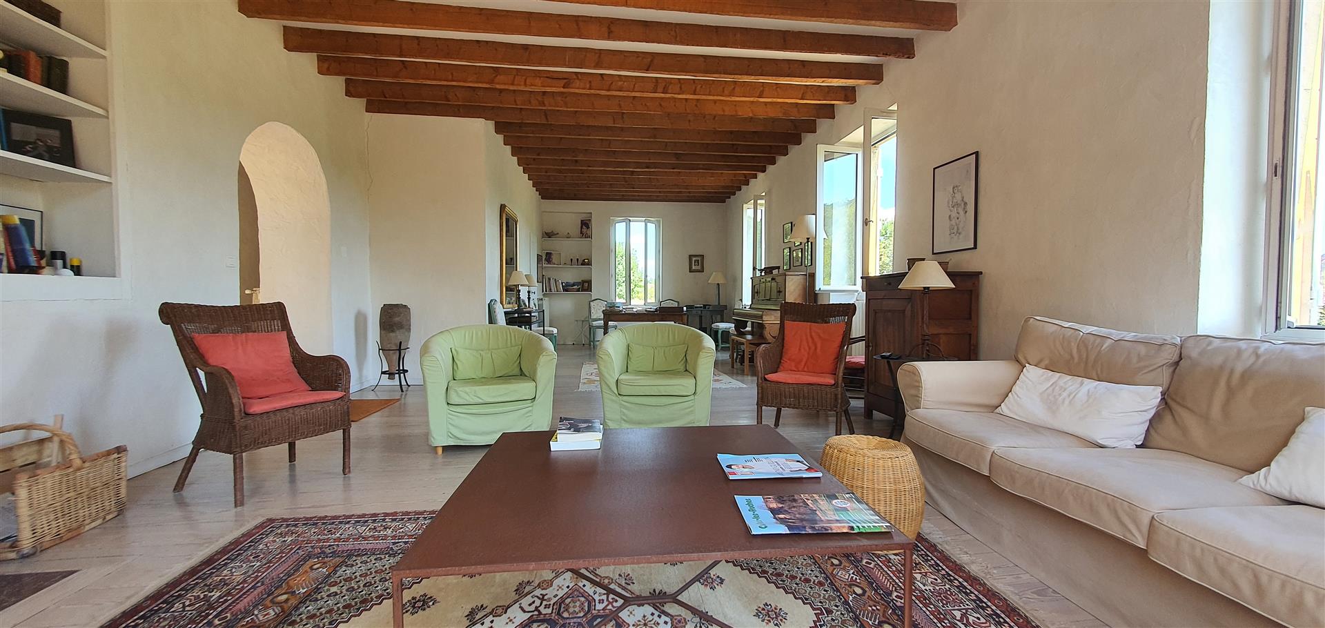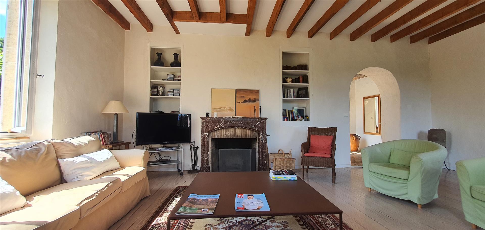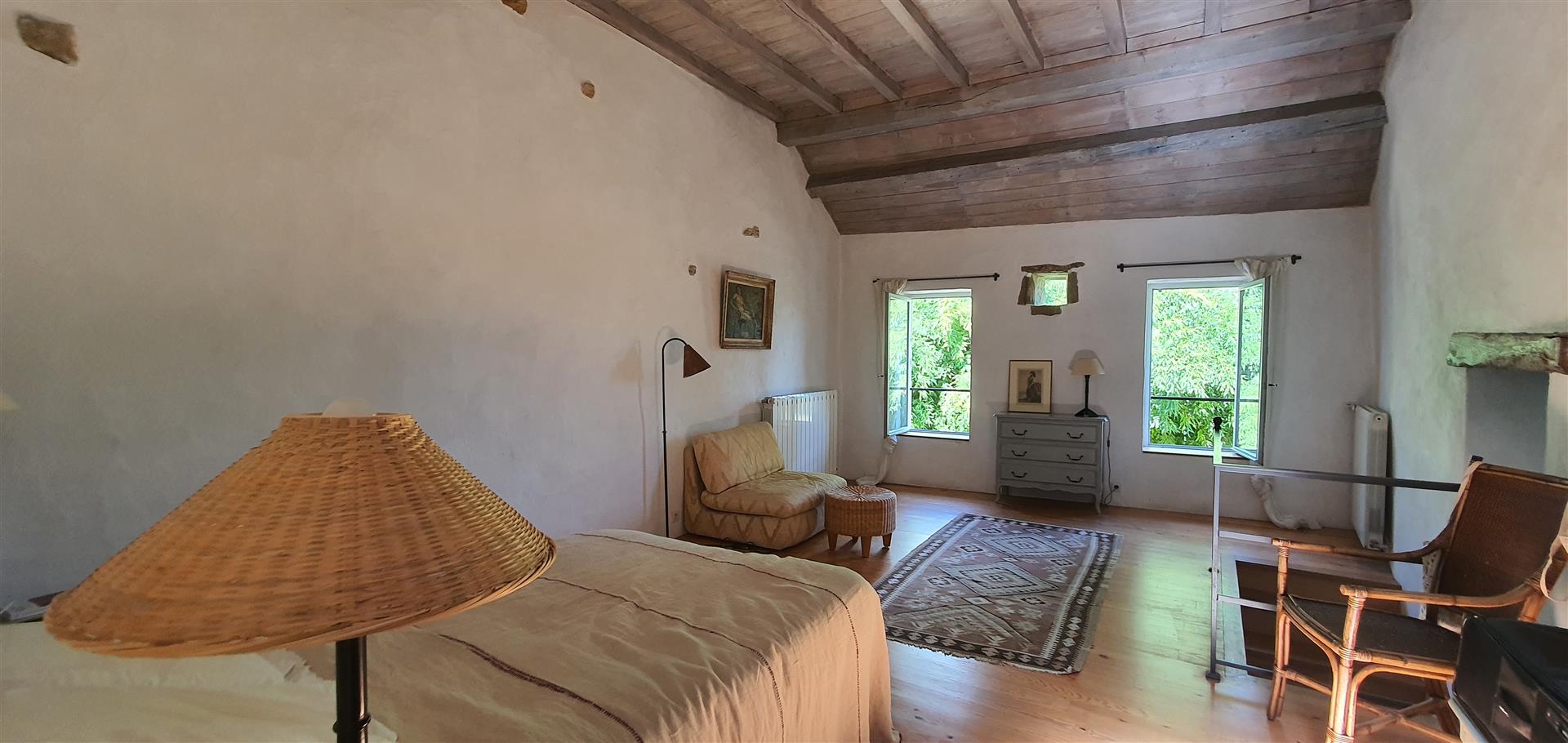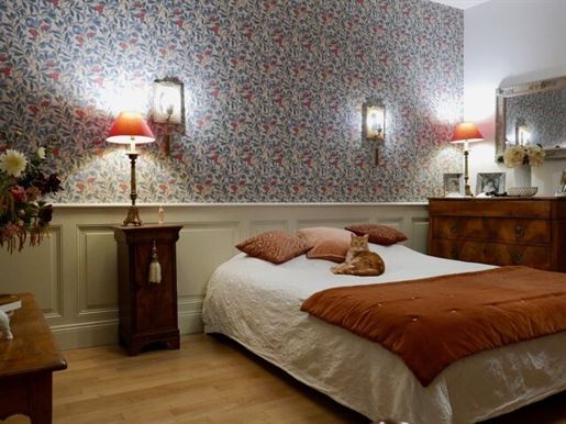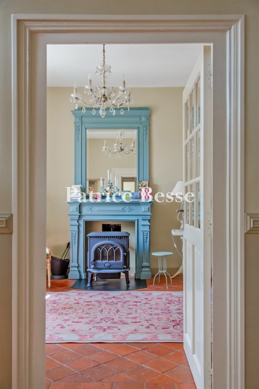 Restaurer cette demeure a été une grande aventure. Les travaux nombreux ont nécessité un investissement en coût et en temps très conséquent. La propriétaire, avec un certain talent, a su restituer avec douceur le charme de cette demeure, en mettant en valeur les matériaux anciens, tout en apportant de la lumière et le confort moderne.