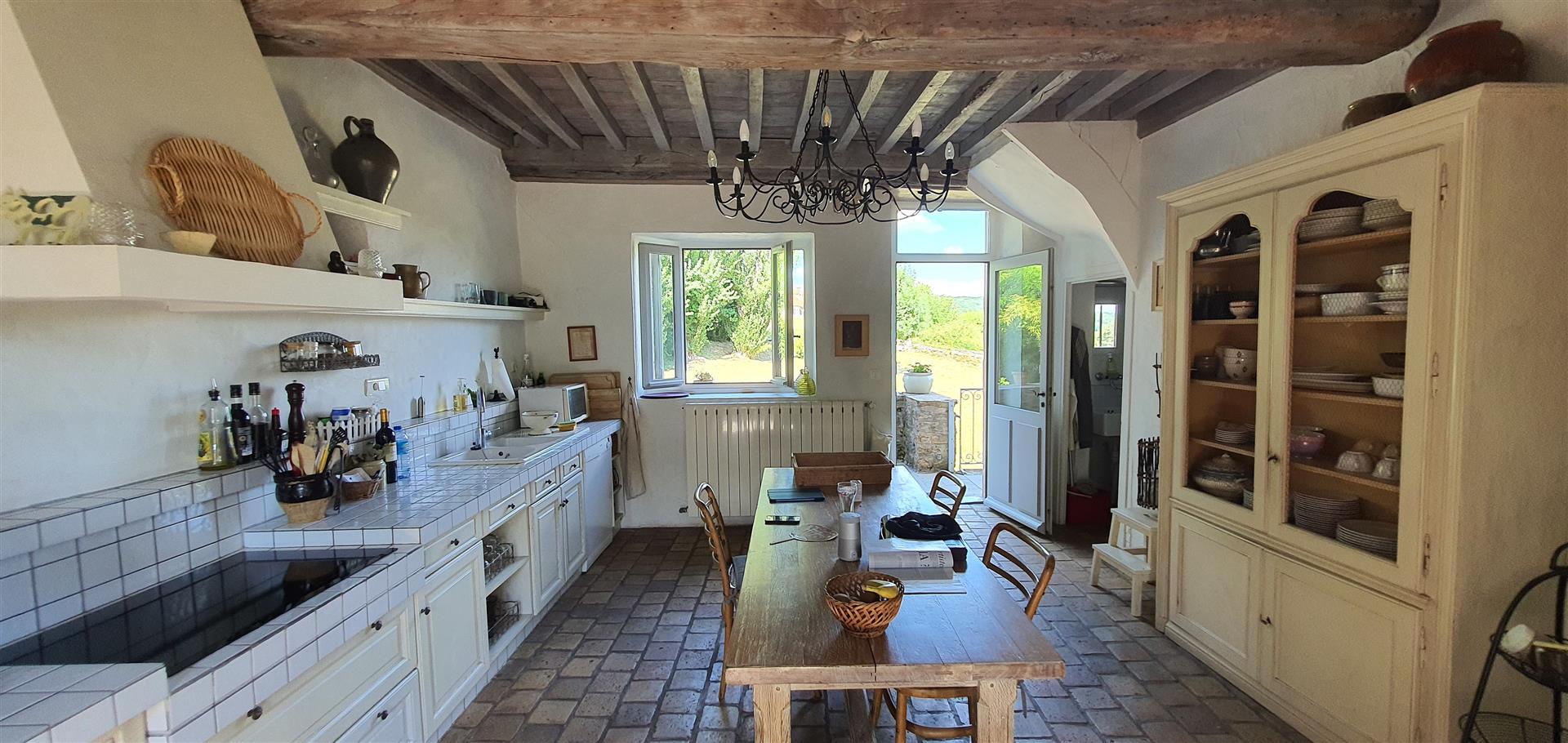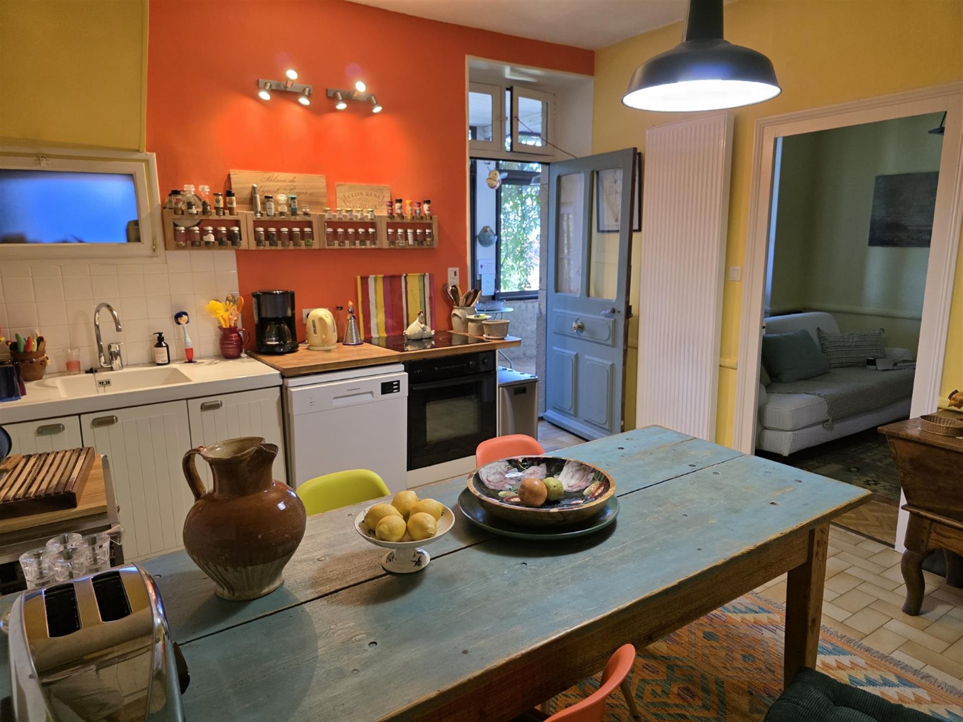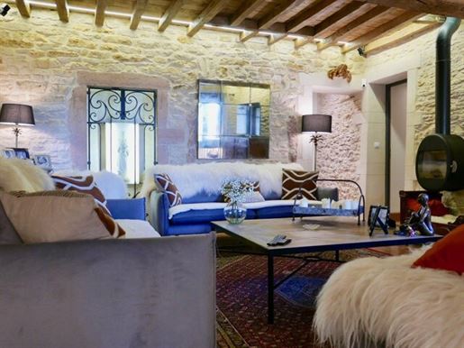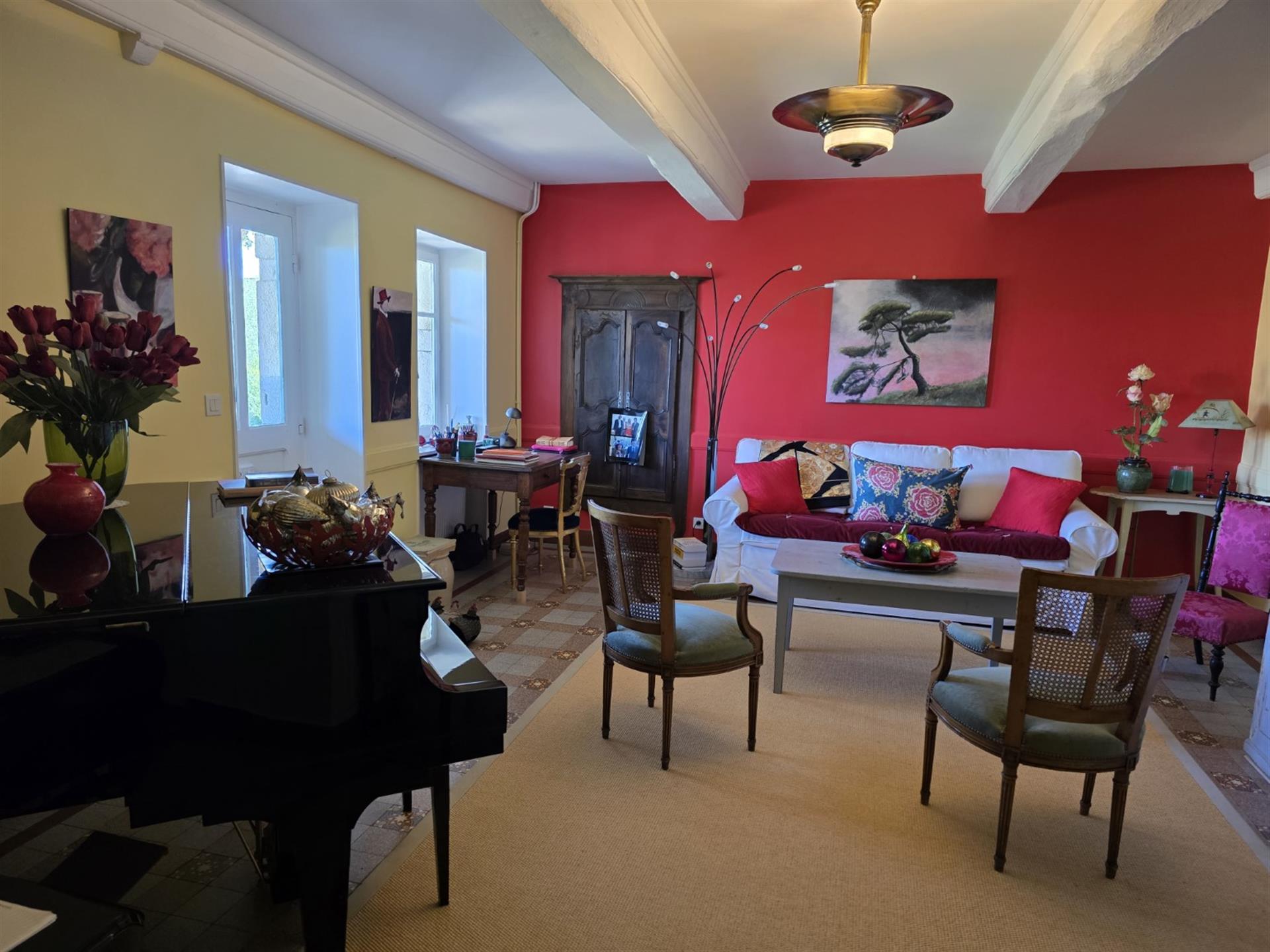 Restaurer cette demeure a été une grande aventure. Les travaux nombreux ont nécessité un investissement en coût et en temps très conséquent. La propriétaire, avec un certain talent, a su restituer avec douceur le charme de cette demeure, en mettant en valeur les matériaux anciens, tout en apportant de la lumière et le confort moderne.