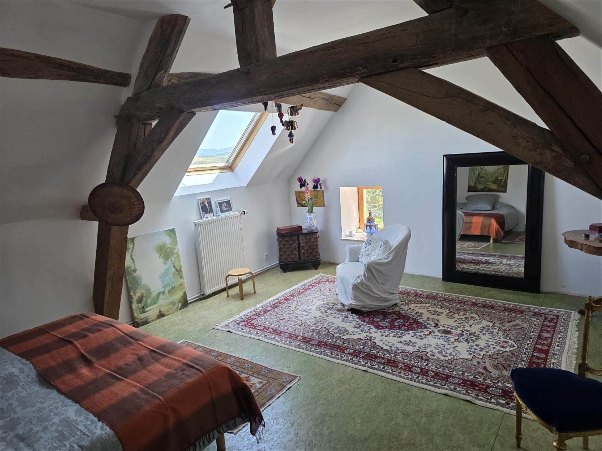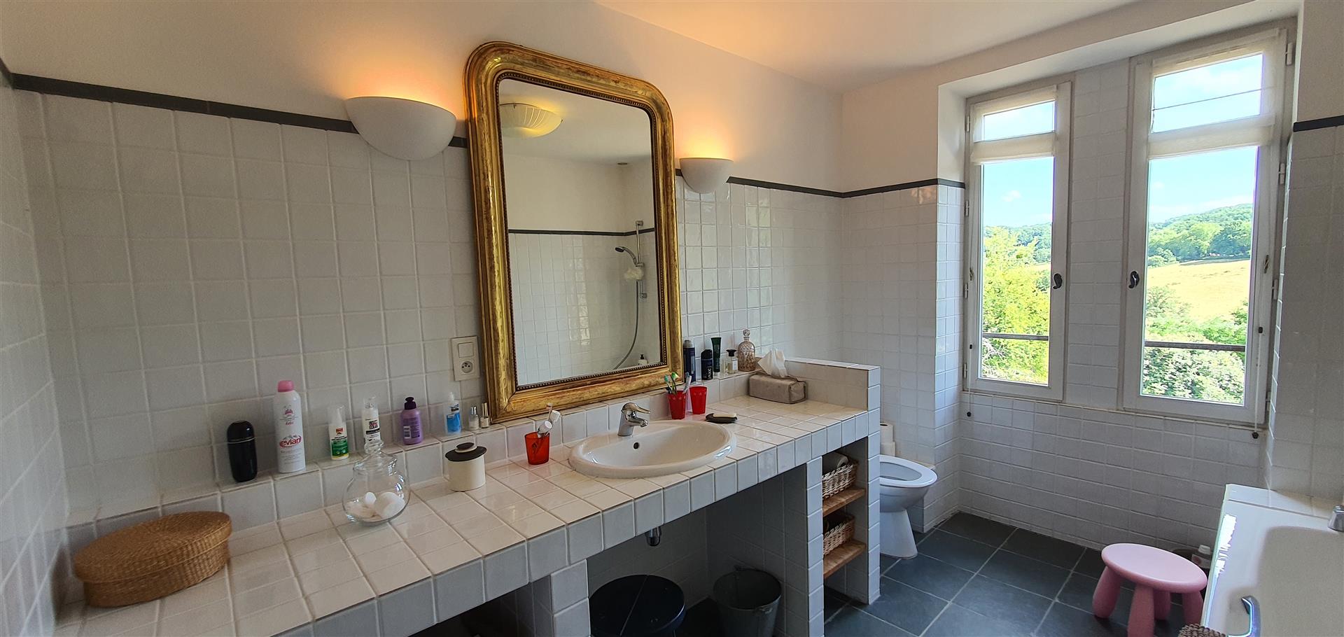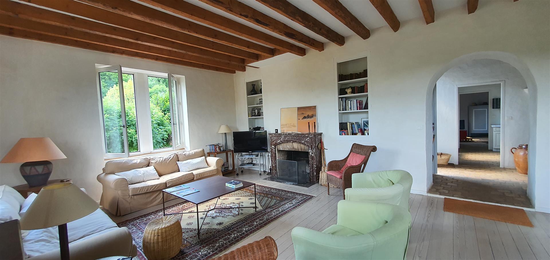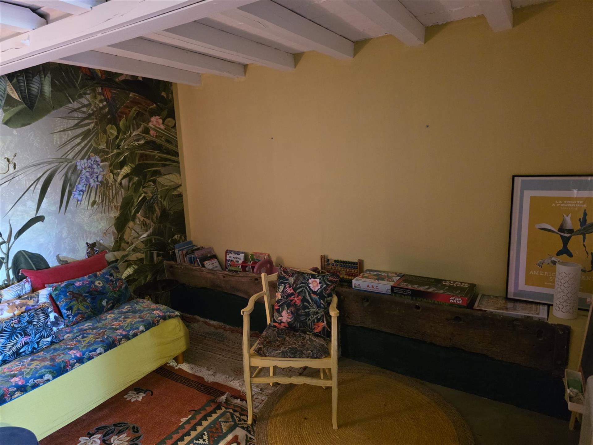 Restaurer cette demeure a été une grande aventure. Les travaux nombreux ont nécessité un investissement en coût et en temps très conséquent. La propriétaire, avec un certain talent, a su restituer avec douceur le charme de cette demeure, en mettant en valeur les matériaux anciens, tout en apportant de la lumière et le confort moderne.