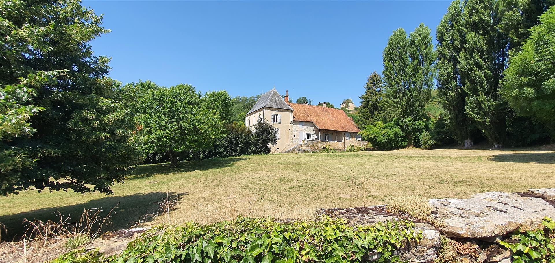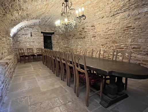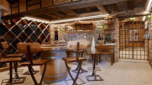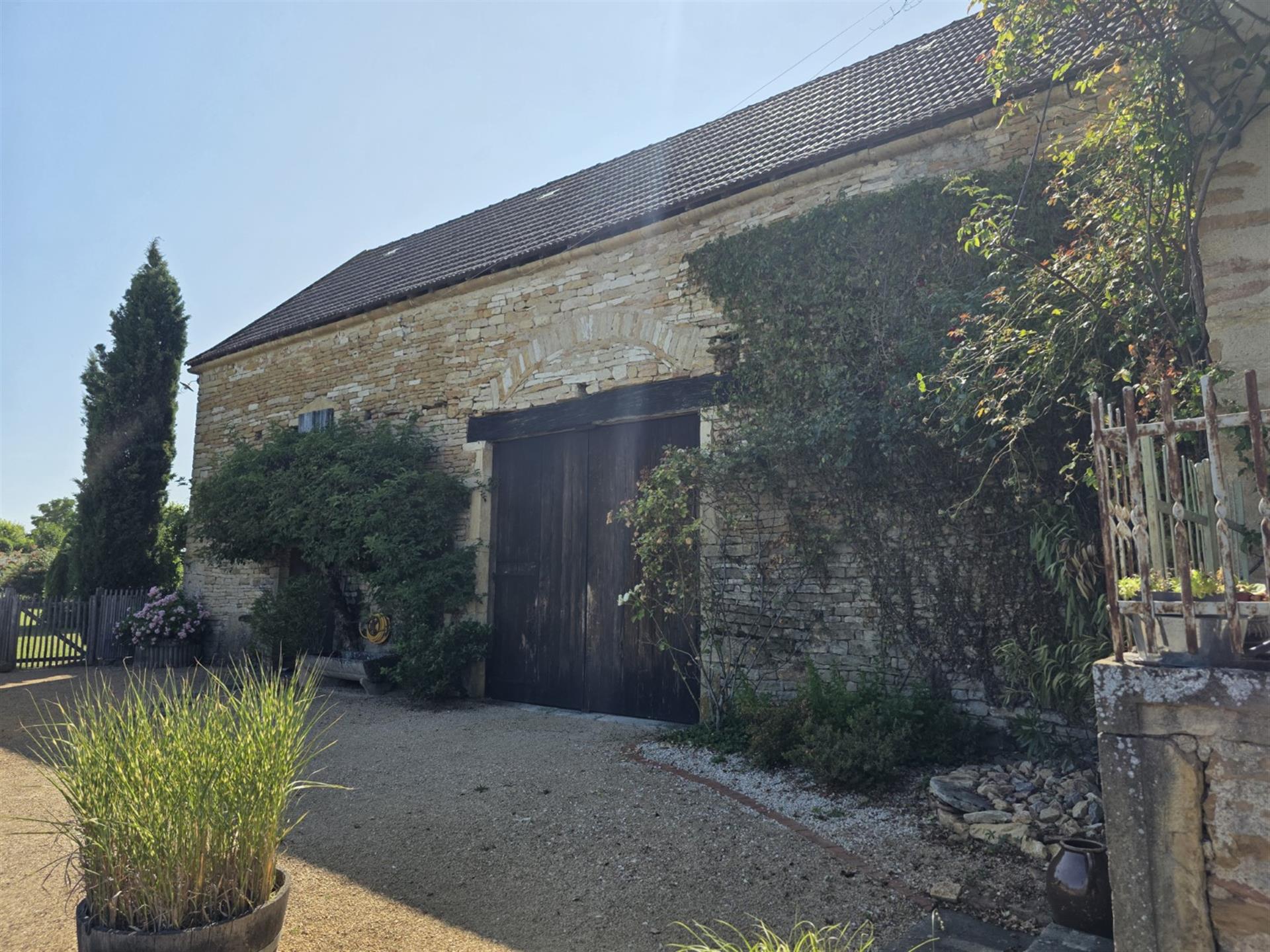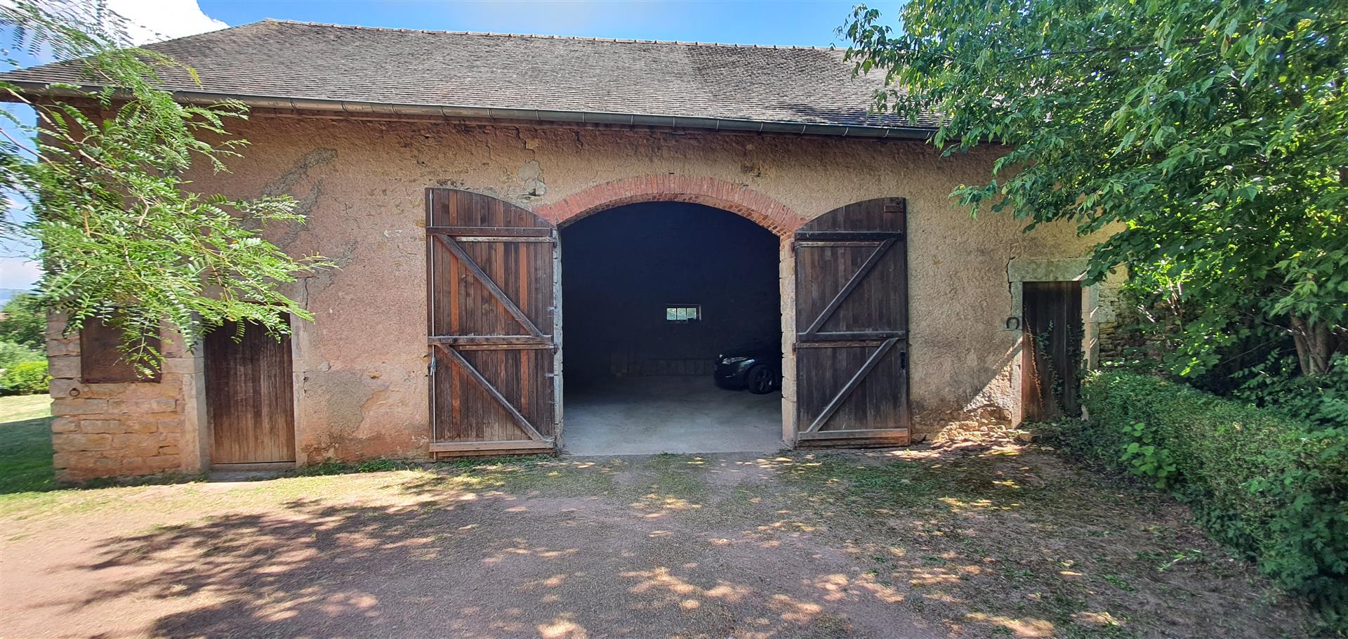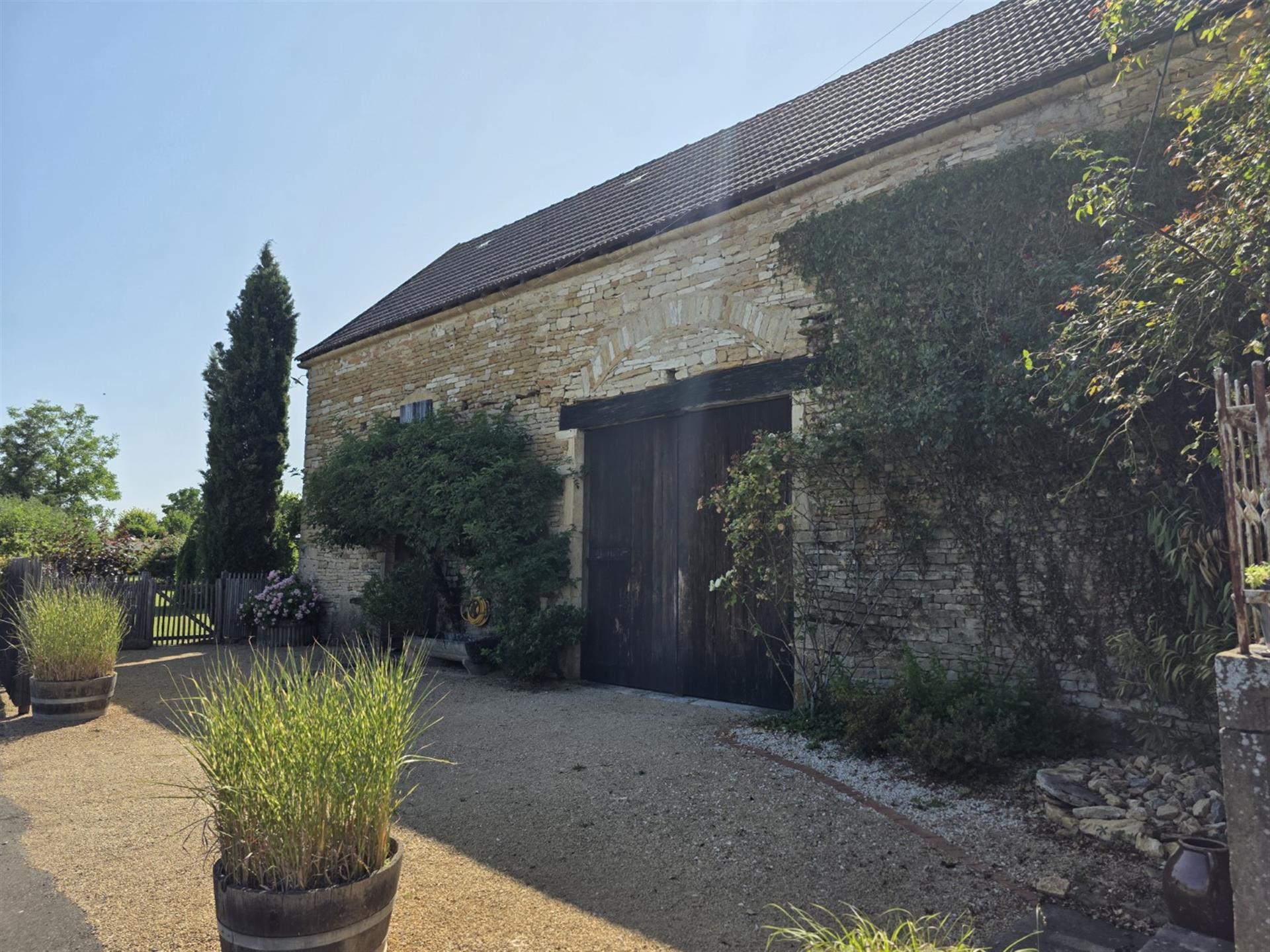 Les dépendances sont nombreuses. À l’entrée de la propriété, une grande grange, discrètement cachée derrière une haute haie, permet de stationner plusieurs véhicules à l’abri des regards. Attenante à la maison, une suite de remises à usage d’atelier, garage, chaufferie et four à pains ainsi qu’une grande cave voutée.