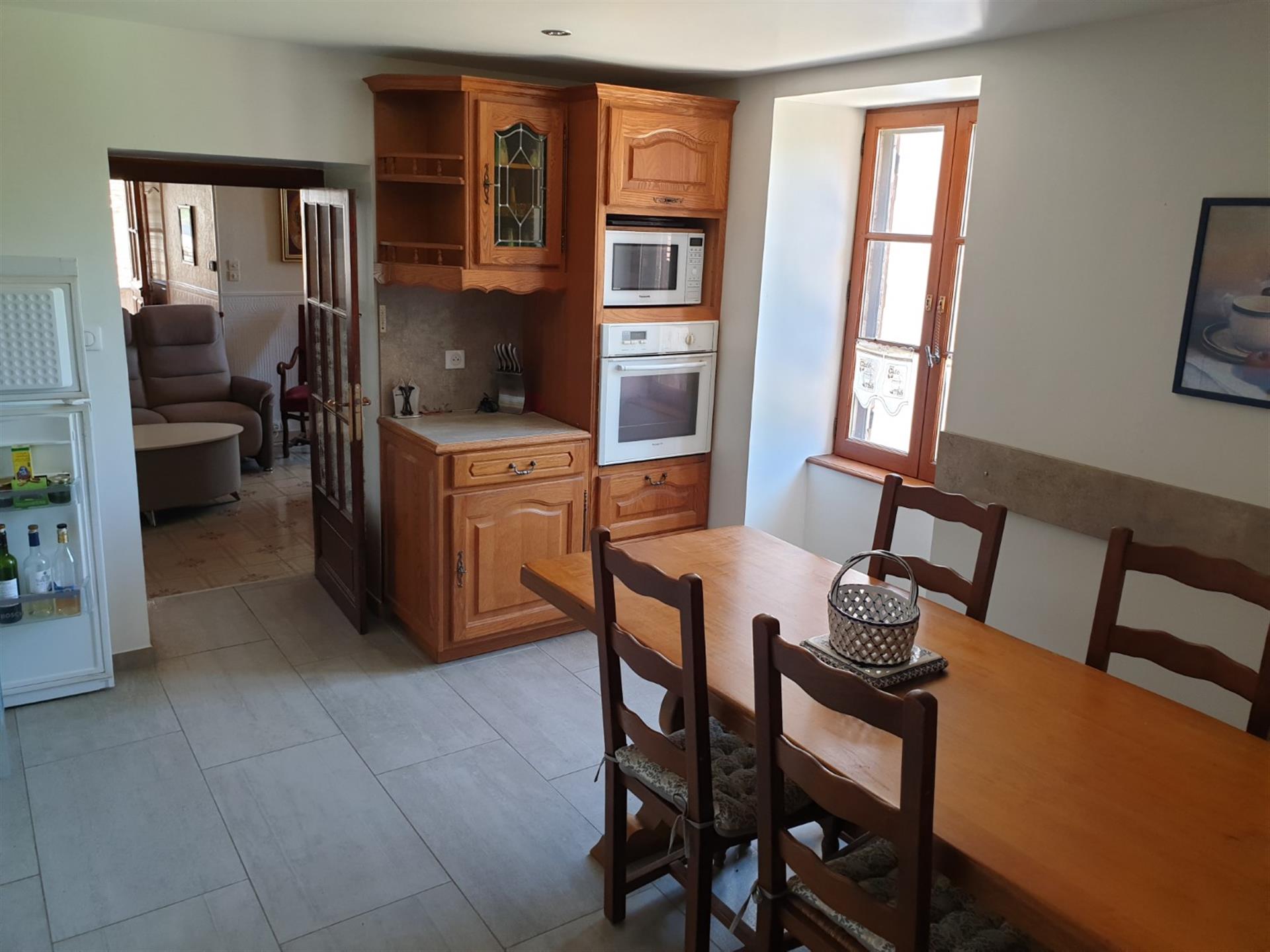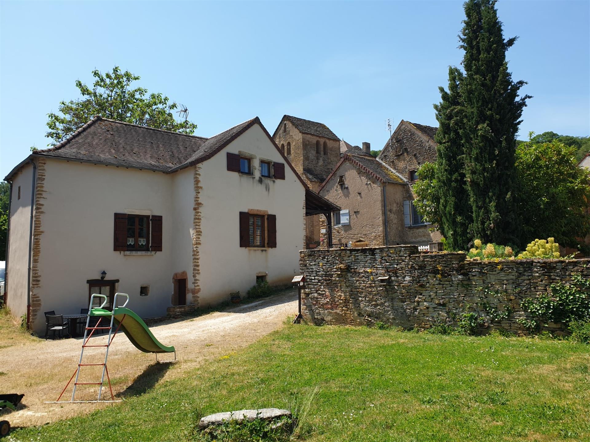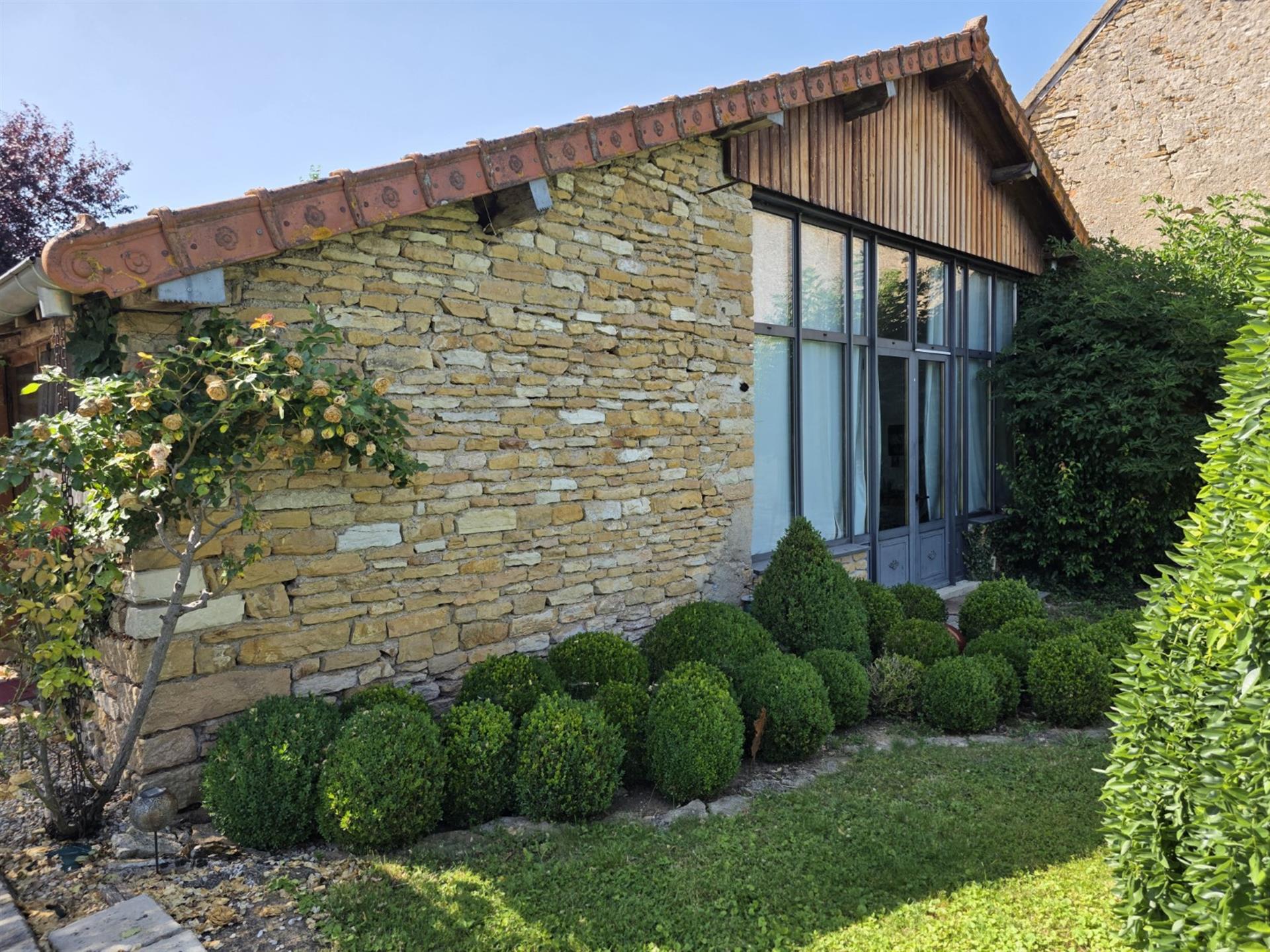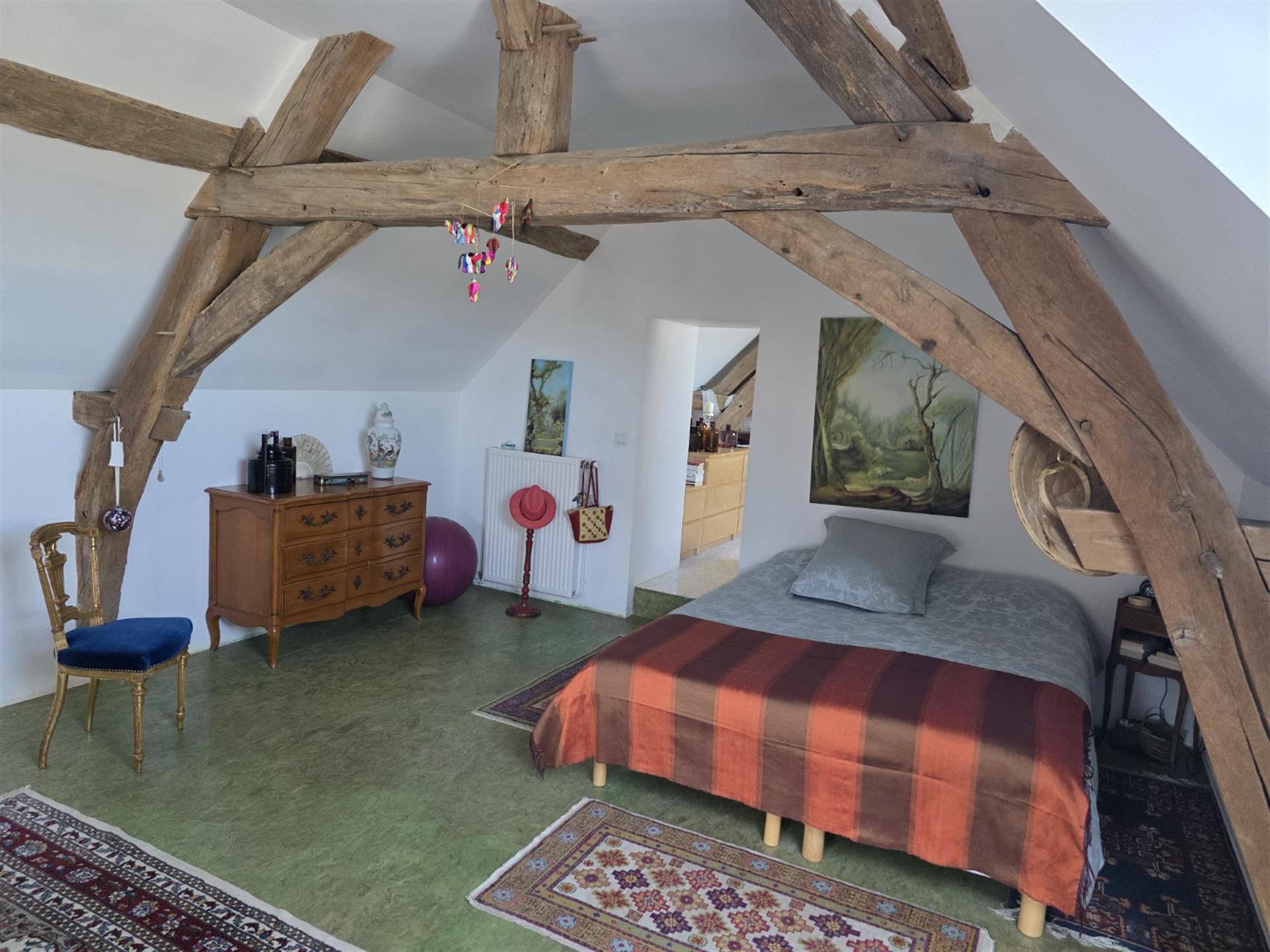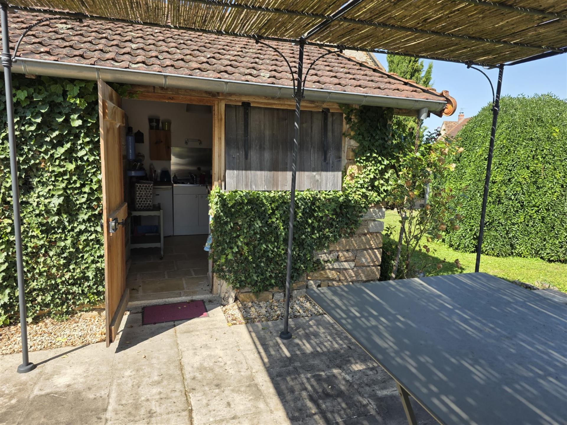 Les dépendances sont nombreuses. À l’entrée de la propriété, une grande grange, discrètement cachée derrière une haute haie, permet de stationner plusieurs véhicules à l’abri des regards. Attenante à la maison, une suite de remises à usage d’atelier, garage, chaufferie et four à pains ainsi qu’une grande cave voutée.