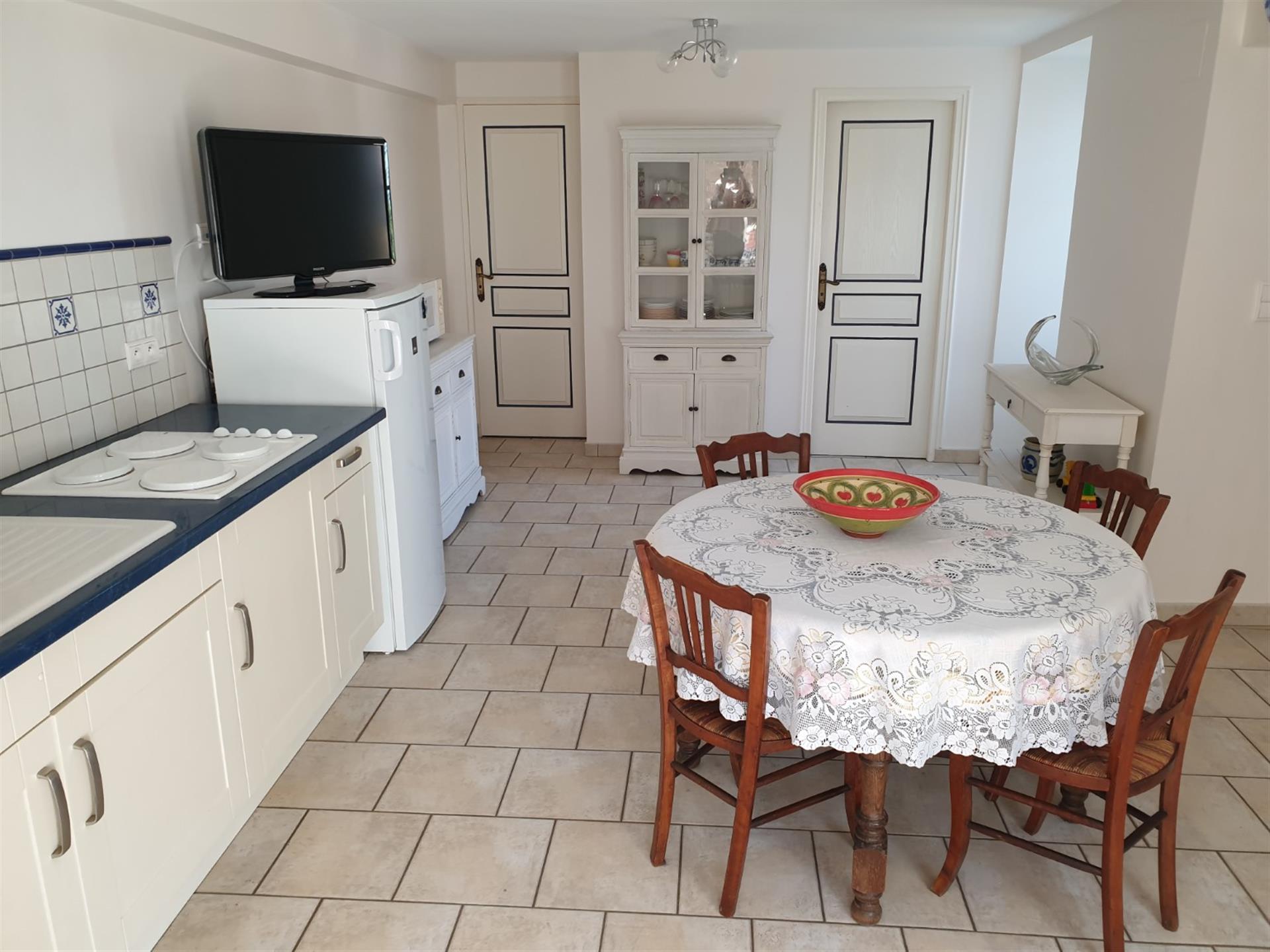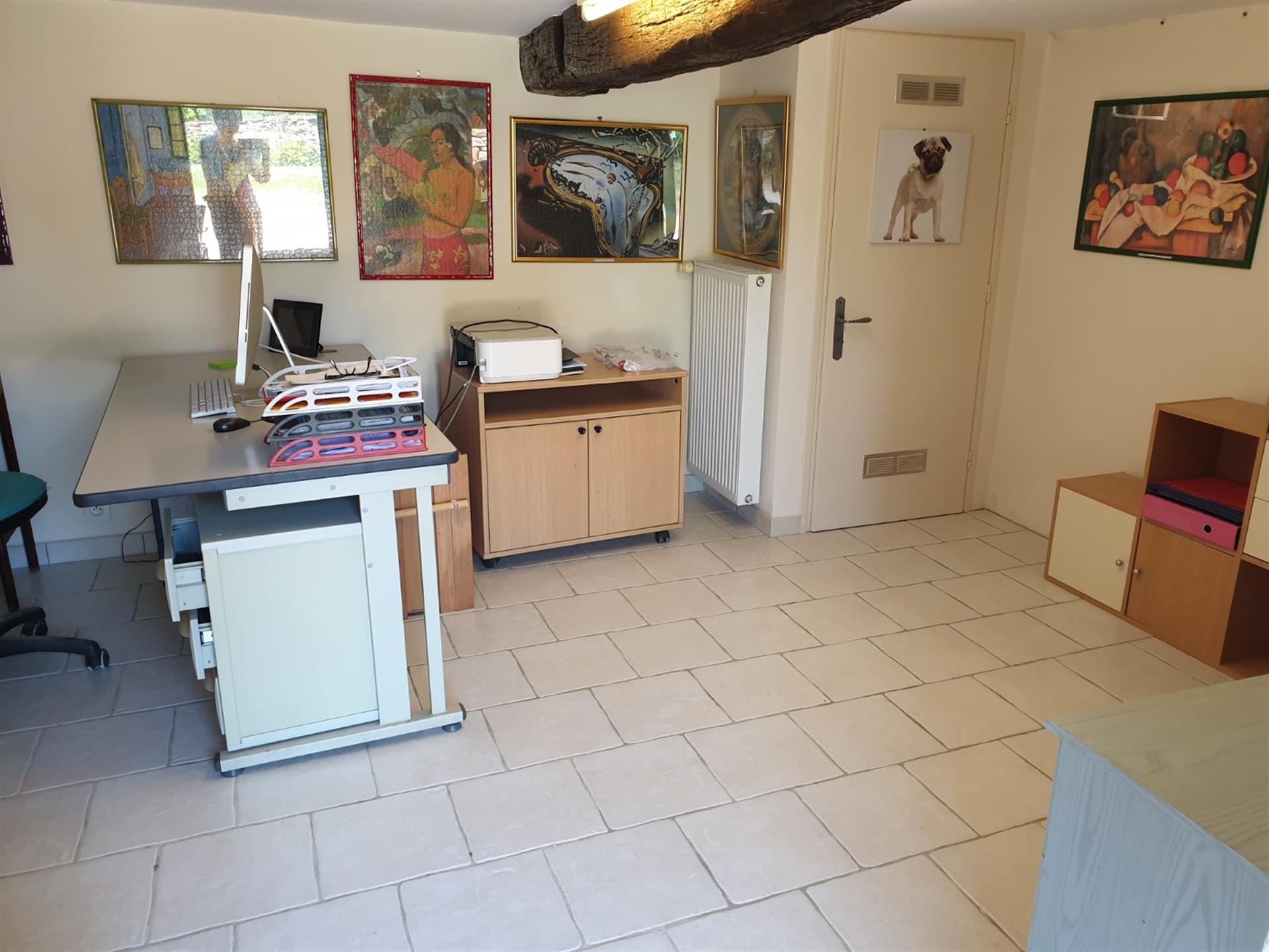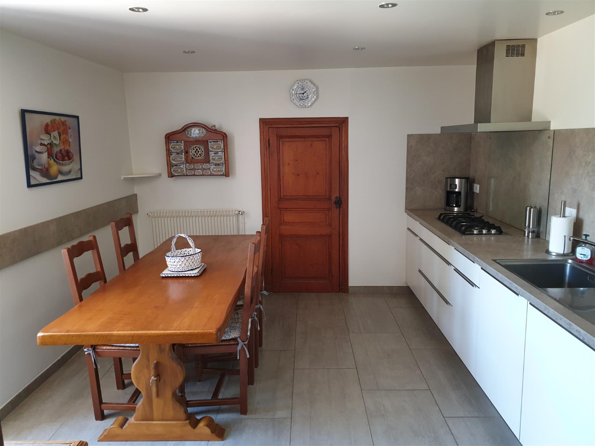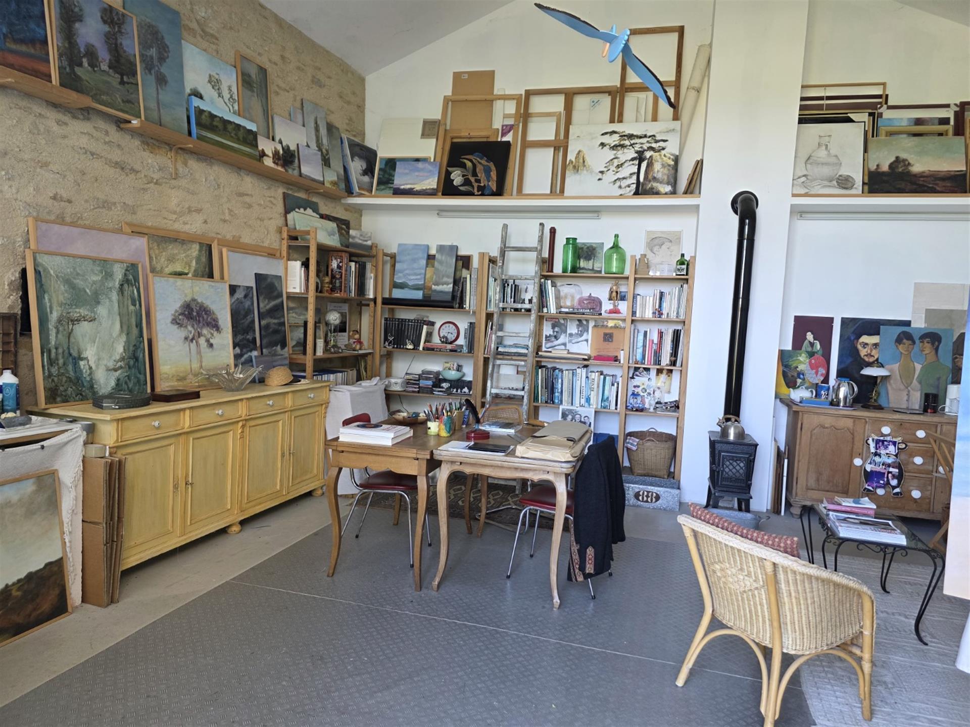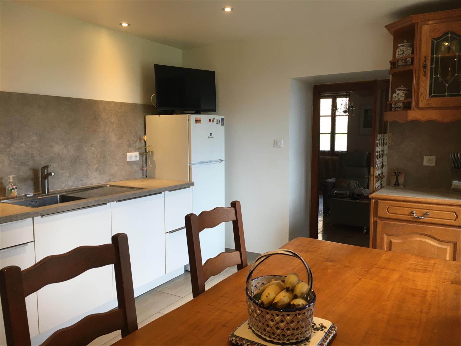 Les dépendances sont nombreuses. À l’entrée de la propriété, une grande grange, discrètement cachée derrière une haute haie, permet de stationner plusieurs véhicules à l’abri des regards. Attenante à la maison, une suite de remises à usage d’atelier, garage, chaufferie et four à pains ainsi qu’une grande cave voutée.