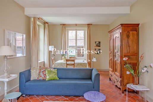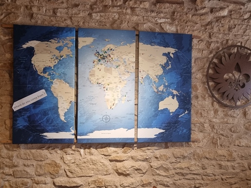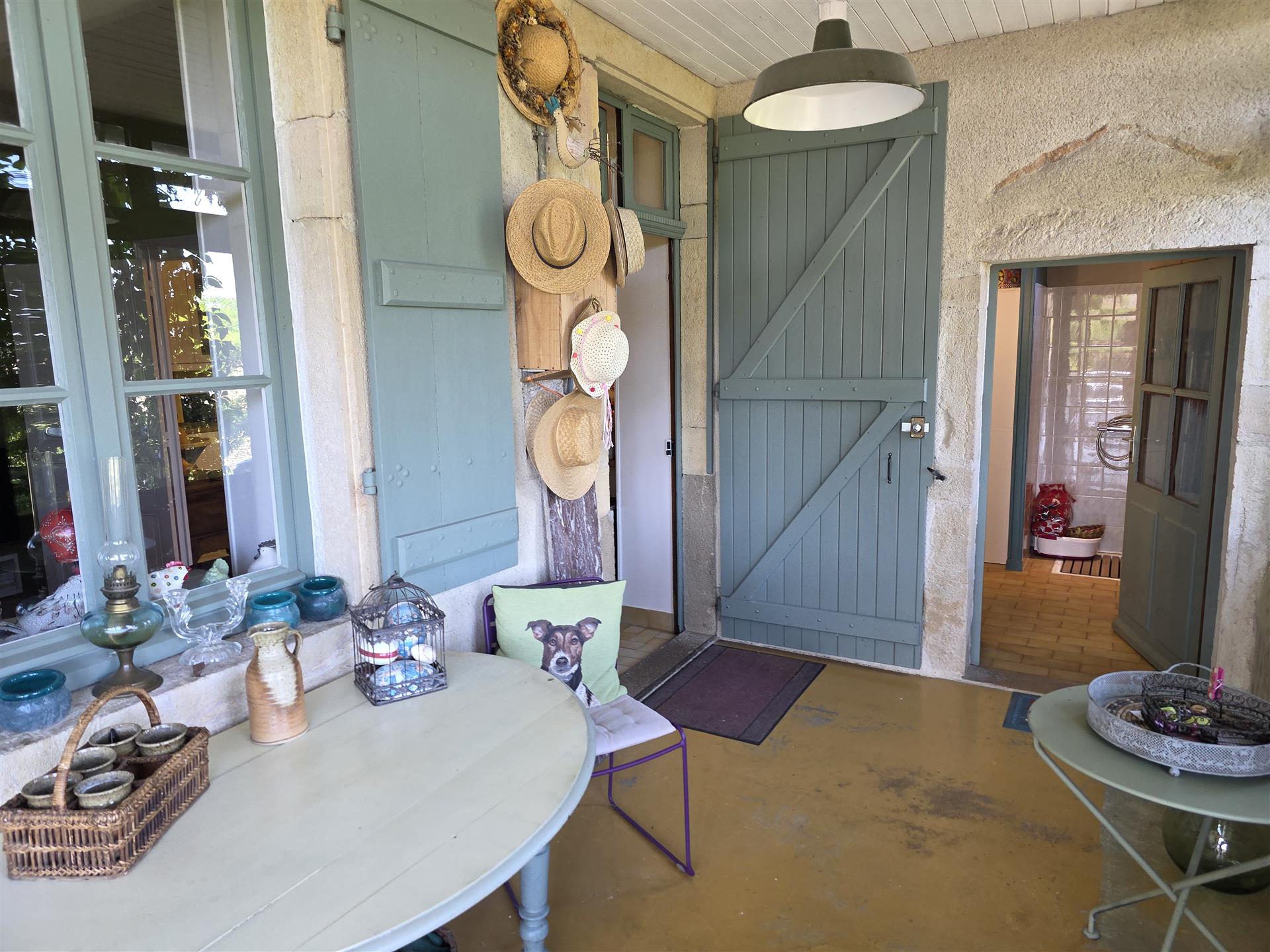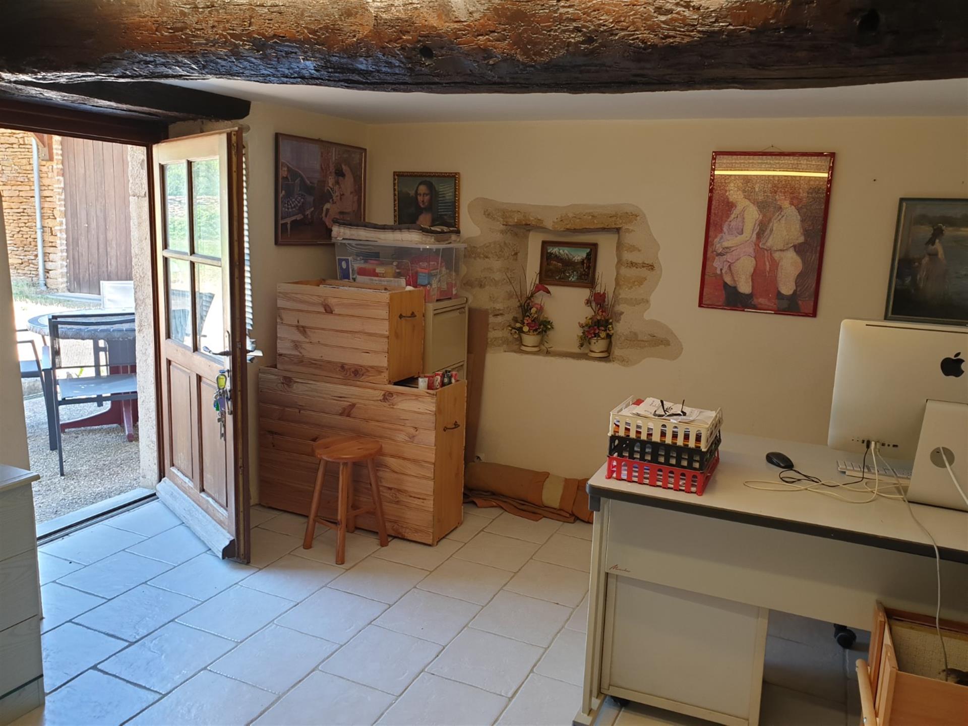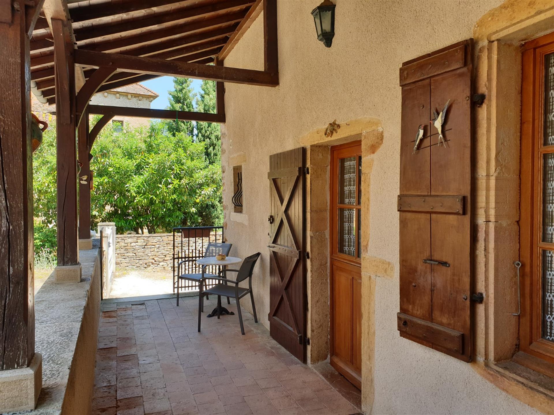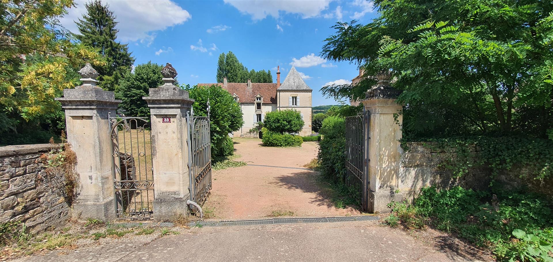 Ma première visite de cette propriété commença par cette déclaration du propriétaire : « J’ai hérité d’une ruine et nous avons tout restauré ! » On comprend pourquoi : Dès l’arrivée devant le grand portail en fer forgé, le regard est immédiatement attiré par cette charmante vieille bâtisse au fond de sa cour. Puis, on descend l’allée qui glisse jusqu’à la maison en passant au pied d’un imposant pigeonnier qui surprend par ses dimensions et donne dès l’entrée le caractère ancien au lieu.