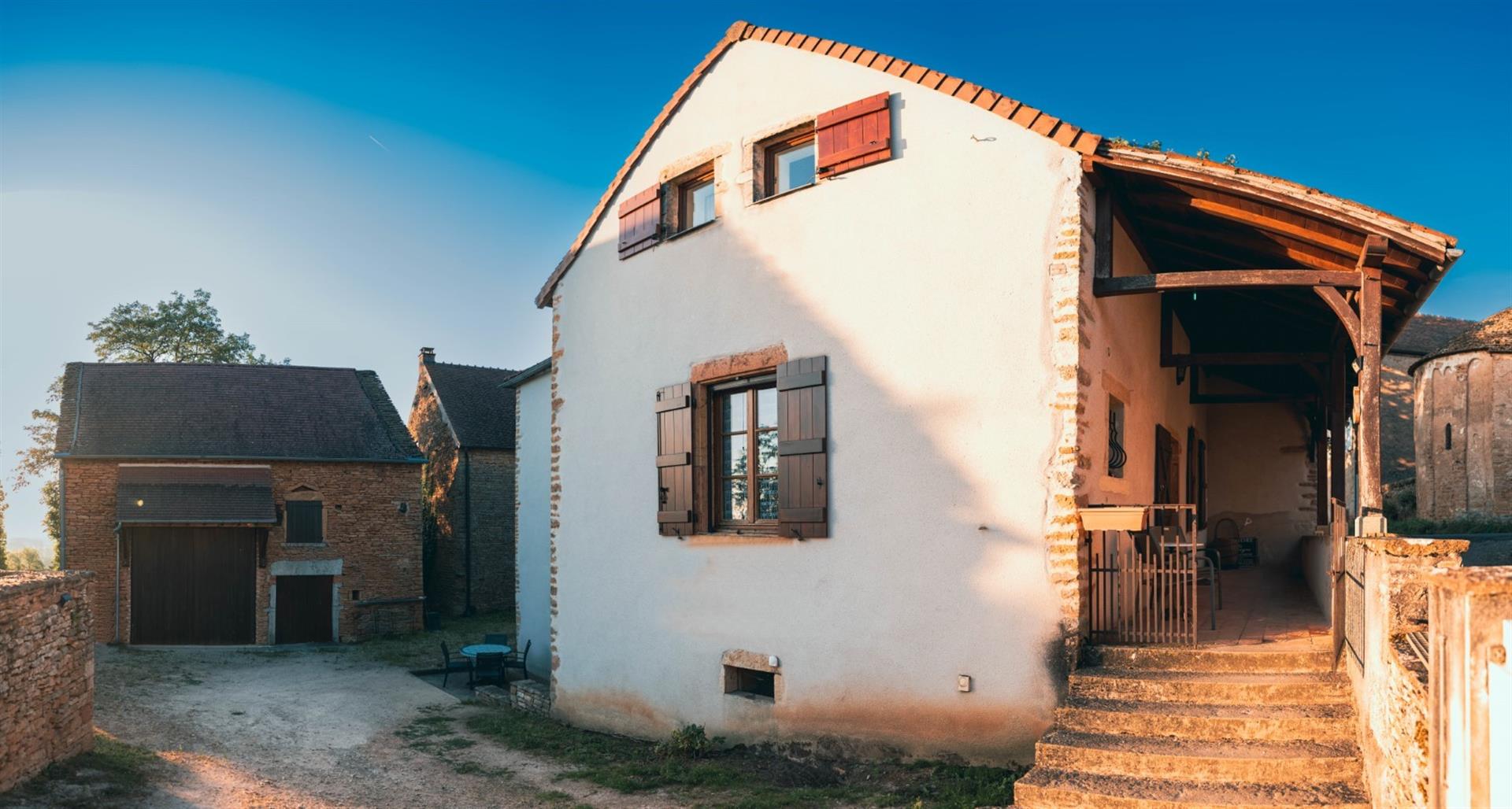 Les origines remontent au 18ᵉ siècle. Il s’agissait d’un domaine viticole qui fournissait l’abbaye de Cluny. Ensuite, la maison rurale a été agrandie et transformée à la fin du 19ᵉ siècle pour devenir une maison bourgeoise. On retrouve sur deux faces les différentes architectures. À l’arrière, la grande ferme vigneronne présente encore sa longue galerie mâconnaise. Et coté parc, la haute façade classique donne le ton bourgeois du 19ᵉ siècle. Côté cour, la façade principale présente un mélange harmonieux entre les deux époques.