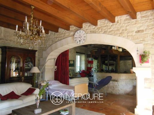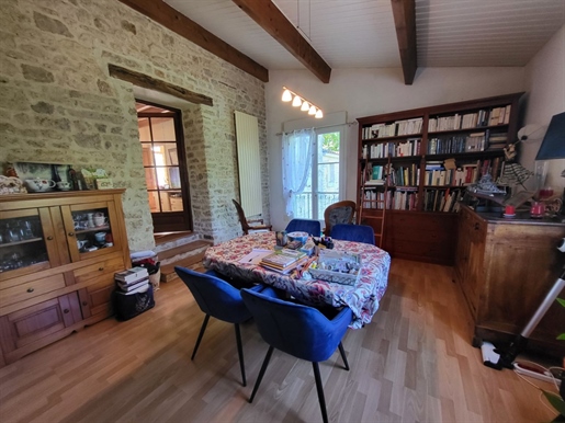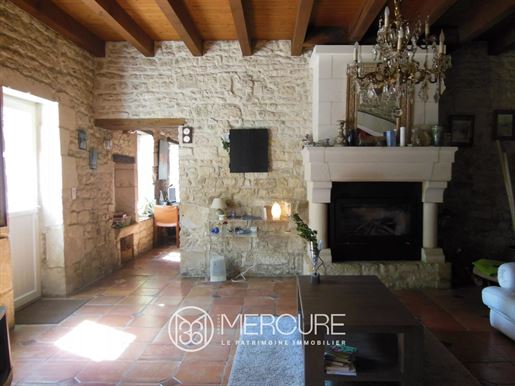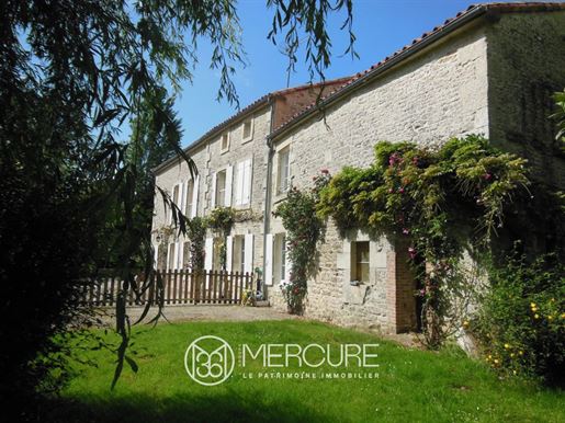 Situé à 20 minutes à l’ouest de Niort et de sa gare Tgv, cet ancien moulin du XVIIe siècle dispose de 229 m² habitables. Implanté sur un terrain de 2 hectares bordé par la rivière, il dispose d’un bel écrin de verdure. Lors de sa restauration, ses éléments d’origine ont été mis en valeur, comme le mécanisme du moulin, les poutres, les murs et la cheminée en pierre du salon. La demeure se compose de pièces familiales chaleureuses, de trois chambres dont une suite parentale, et deux salles de bains. Des dépendances viennent compléter cet ensemble, parmi lesquels une grange ouverte, des petits toits, un four à pain, un atelier. Dans le jardin, un verger et un potager.