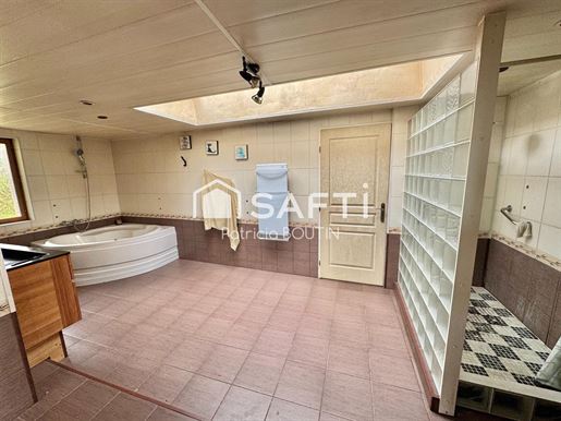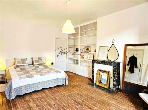 L’accès au premier étage se fait par un escalier pierre et bois qui mène à un palier de 3,56 m² sur moquette (Hsp : de 3,31 à 3,74 m), distribuant une chambre de 21,40 m² sur parquet, avec mezzanine de 8,46 m², un dressing de 2 m², une salle d’eau de 4,41 m² (baignoire, lavabo, Wc), un dégagement de 2,92 m², donnant sur une chambre de 25 m² sous pente (Hsp : de 2,23 à 3,22 m), sur parquet. L’Étage dispose également d’un grenier de 16,50 m², d’un dégagement de 2,88 m² donnant sur une suite parentale comprenant une chambre de 41,92 m² sur moquette, avec poutres, et murs en pierres apparentes, communiquant avec un dégagement de 4,27 m² avec dressing, et une salle de bains de 15,15 m² (baignoire, deux vasques, Wc indépendant).