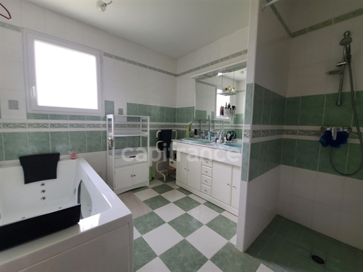 Pour votre confort, vous disposerez également d'un bureau de 8,41 m2 (sol en ciment), d'une pièce de 7,43 m2 avec deux placards de rangement, et d'une salle d'eau moderne de 5,70 m2 comprenant un meuble vasque, une douche à l'italienne et un Wc avec coin buanderie. Deux WCs indépendants de 1,24 m2 et 1,70 m2 complètent ce niveau.