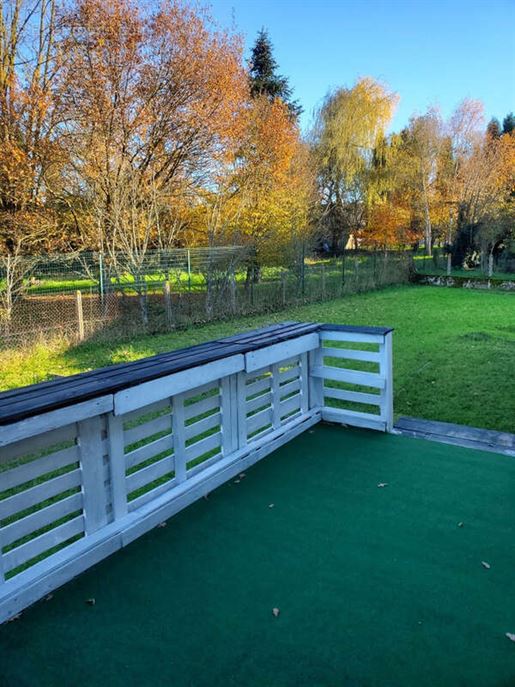 Côté terrain, cette maison propose une parcelle d'environ 480m² entretenue, arborée et clôturée, elle dispose d'une grande terrasse couverte de 41m², d'un double garage de 19 et 44m² avec portes de garage en bois.