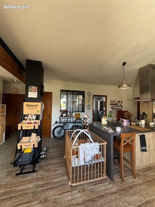 Cette maison dispose d'une entrée sur une grande pièce de vie de 36m², comprenant un espace de cuisine aménagée et équipée, ouverte sur un espace séjour agrémenté d'un poêle à bois pour de belles soirées au coin du feu.