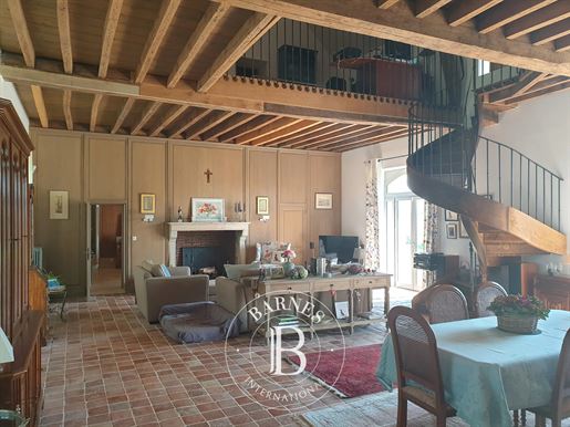 Le rez-de-chaussée se complète d'un grand séjour salon de 36m², de deux chambres de 18 et 14m², d'une salle d'eau de 9m² et d'une salle de bain de 5m², d'un wc indépendant, d'un cellier ainsi qu'un petit espace de bureau.