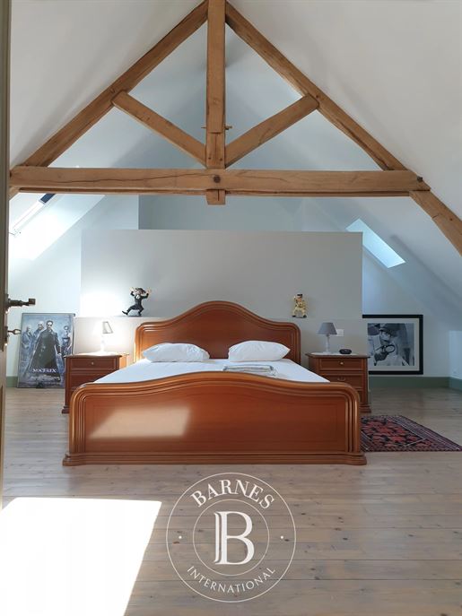 De la pièce de vie, un escalier mène à l'étage, où le palier qui dessert une pièce dressing de 8m², une grande salle de bain avec wc intégré, ainsi que deux belles chambres de 14 et 17m²,