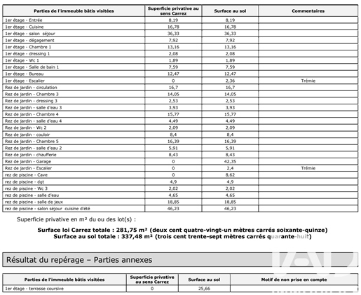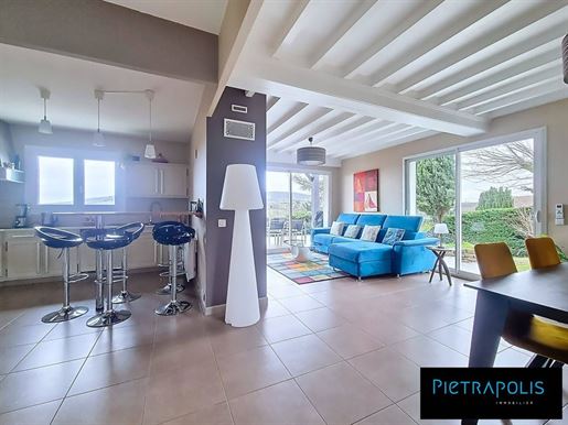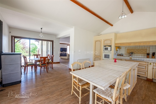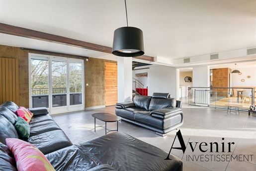 Nichée au calme d'un secteur résidentiel prisé de Dommartin, cette maison individuelle d'environ 300 m² habitables, posée sur une belle parcelle arborée de 2 582 m², offre un cadre de vie spacieux et chaleureux, idéal pour une grande famille en quête de sérénité et de confort.Dès l'entrée, la vaste pièce de vie de 107 m² donne le ton. Les volumes sont généreux, la lumière omniprésente. La cuisine américaine, entièrement aménagée et équipée, s'ouvre sur une salle à manger conviviale et un séjour à l'ambiance douce et accueillante. Les 3 baies vitrées prolongent naturellement l'espace vers une grande terrasse exposée sud-ouest, parfaite pour profiter des fins de journées ensoleillées et d'une vue dégagée sur la verdure.À l'étage, les enfants disposent de leur propre univers : trois chambres lumineuses, une salle de bain, un Wc indépendant et un agréable coin télé, véritable lieu de détente pour les moments de partage ou de calme après l'école.Au niveau inférieur, se trouve une belle suite parentale de 24 m², agrémentée d'un spacieux dressing de 14,5 m² et d'une salle d'eau privative. Cet espace, à l'écart de la vie de famille, crée une atmosphère paisible et confortable. Vous y découvrirez également une chambre supplémentaire, une salle de jeu idéale pour les enfants ou pour accueillir vos invités, ainsi qu'un coin technique avec buanderie et rangements intégrés, parfaitement pensés pour le quotidien.À l'extérieur, la piscine et sa plage offrent un véritable espace de détente et de convivialité. À ses côtés, une grande terrasse en bois exotique accueille une cuisine d'été équipée et un four à pizza, parfaits pour prolonger les repas en famille ou entre amis autour d'un déjeuner ensoleillé. Le terrain, entièrement clos et joliment aménagé, permet de profiter pleinement du calme environnant. La terrasse attenante à la pièce de vie s'impose quant à elle comme une continuité naturelle des espaces intérieurs, idéale pour les soirées d'été. Un double garage et de nombreuses places de stationnement complètent l'ensemble.Côté confort, la maison est équipée d'une pompe à chaleur air/eau et d'une cheminée bois qui apporte une touche chaleureuse et conviviale aux soirées d'hiver. L'assainissement est conforme au tout-à-l'égout.Située dans un environnement résidentiel calme et verdoyant, cette maison bénéficie d'un accès rapide à l'A89, permettant de rejoindre le centre de Lyon en moins de 30 minutes. Un cadre de vie idéal, où volume, confort et qualité de vie se conjuguent harmonieusement.Honoraires à la charge du vendeur. Classe énergie C, Classe climat C Montant estimé des dépenses annuelles d'énergie pour un usage standard : entre 4610.00 et 6300.00 sur les années 2021, 2022 et 2023 (abonnements compris). Les informations sur les risques auxquels ce bien est exposé sont disponibles sur le site Géorisques : . Votre conseiller Novea Immobilier : Lucas De NAGOURSKIAgent commercial (Entreprise individuelle) Rsac Rcp Galian-Smabtp RCACO-Nos honoraires
