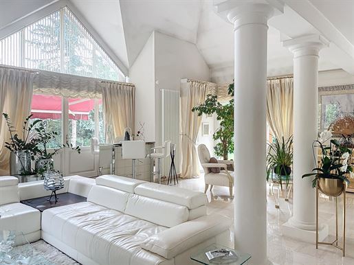Située à Étiolles (91450), proche Soisy sur Seine, cette propriété habitable de 242 m2 plancher 289 m2 offre un cadre de vie privilégié dans le golf d'Étiolles, garantissant sécurité et tranquillité. À proximité des commerces, écoles, lycées, collèges, crèches, arrêts de bus, gare Rer D, Rn7 et A6. La localité facilite le quotidien de ses habitants. De plus, la présence de commodités telles que la fibre optique renforcent son attrait pour les familles modernes. Les 1677 m² de terrain comprennent des aménagements extérieurs de qualité avec un jardin soigné, une piscine chauffée, un accès privilégié au golf pour les amateurs. Les places de parking extérieur et un double garage, assurent praticité et sécurité pour les véhicules des résidents. Cette maison construite en 1990 propose un agencement intérieur optimal. L'entrée se fait par la véranda suivi d'un grand hall, le salon avec cheminée, salle à manger, cuisine équipée fermée, buanderie, 1 chambre suite parentale avec salle de bain et wc, 1 salle de bain, wc. A l'étage une mezzanine dessert, 1bureau/chambre avec un balcon, 1 chambre, 1 chambre suite parentale avec salle de douche, wc et son balcon, 1 salle de bain, wc. Des aménagements modernes incluant des placards, du double vitrage, et des équipements de qualité dans toutes les pièces. Une dépendance attenante à la villa où l'on trouve la salle de sport, la salle détende hammam, sauna et douche. Le sous-sol, la cave. Le tout sur une surface 200 m2 Petite copropriété de 17 lots, avec des charges de 1600 Euros/an. Taxe foncière 5000 Euros/an. Chauffage gaz. Le bien comprend 1 lot, et il est situé dans une copropriété de 17 lots (les charges courantes annuelles moyennes de copropriété sont de 1600 € et le syndicat des copropriétaires ne fait pas l'objet d'une procédure citée à l'article L. 721-1 du code de la construction et de l'habitation). Les informations sur les risques auxquels ce bien est exposé sont disponibles sur le site Géorisques : Prix de vente : 1 260 000 € Honoraires charge vendeur Contactez votre conseiller Safti : Nathalie Duverne, Tél. : , E-mail : - Ei - Agent commercial immatriculé au Rsac de Evry sous le numéro 750 459 919