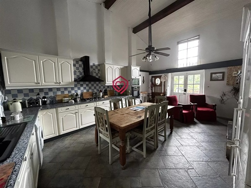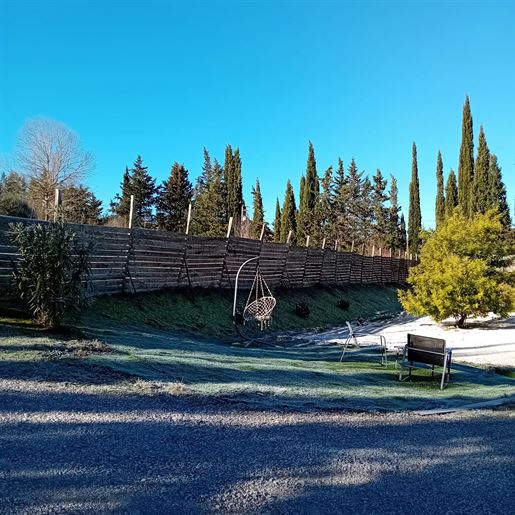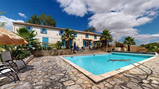 Située dans un hameau à proximité du village de Fanjeaux, village avec commerces et services et à une heure de Toulouse et de son aéroport international, propriété composée d'une maison principale, d'un gîte de 184,18 m2, d'un garage, bâtie sur une parcelle de 6,38 ha dont 6ha de bois. D'une surface habitable de 239,83 m2, l'habitation principale se compose de : au 1er étage : un hall, un séjour/ salon de 115 m2 (cuisine à créer) ouvrant sur une terrasse de 50 m2 exposée Sud, un Wc. Au 2ème étage : un palier, une chambre en suite de 26 m2 avec salle d'eau et Wc, une chambre de 17,44 m2 avec salle d'eau / Wc, une chambre de 23 m2 avec salle d'eau / Wc. Au rez-de-jardin un espace garage de 160 m2 et un espace cave de 47 m2.