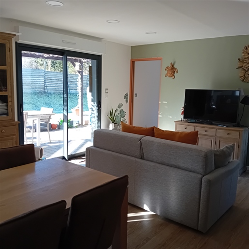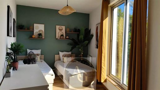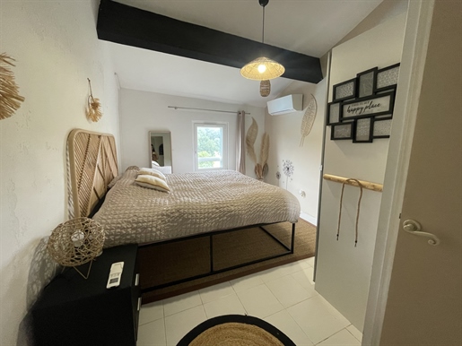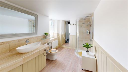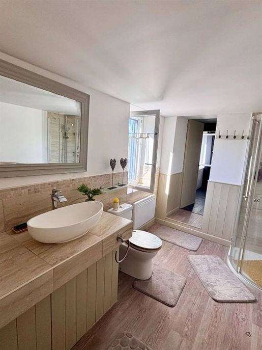 D'une surface habitable de 184,18 m2, le gîte se compose de : Au rez-de-chaussée : un garage de 45 m2, un carport de 40 m2, un séjour / cuisine de 43 m2. Au 1er étage : un salon de 16,78 m2, un couloir, une chambre de 17,29 m2, une chambre en suite de 23,25 m2 avec dressing de 3,8 m2 et salle de bain avec Wc, un dressing de 5 m2, une salle d'eau et un Wc. Au 2ème étage du gîte : un séjour cuisine de 35,32 m2, ouvrant sur une terrasse de 21 m2, un Wc, une chambre en suite de 14,2 m2 avec placard et salle de bain.