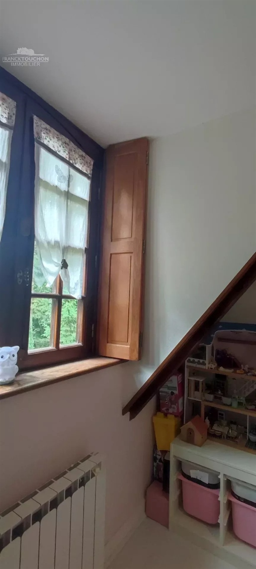 A l'étage : palier distribuant 3 chambres mansardées dont une traversante, une salle de bains avec Wc. Vous serez séduits par le caractère authentique des lieux et de son terrain clos et arboré de plus de 1200 m2, sa terrasse orientée plein sud, barbecue, un espace chaleureux offrant un cadre de vie intimiste pour profiter de moments de détente et de convivialité.