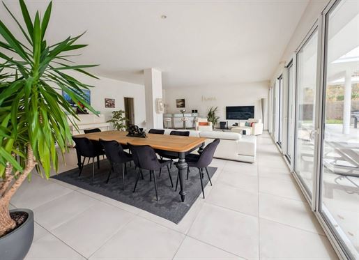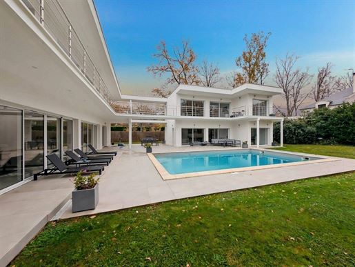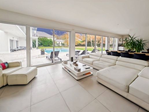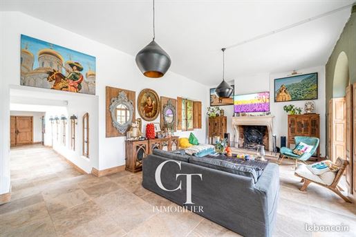 Villa 10 pièces 400 m² Au coeur du quartier prisé de Saint Gemme à Feucherolles, venez découvrir cette villa d'exception qui saura vous séduire par son raffinement et son caractère unique. D'une surface habitable de 400m², cette propriété de prestige s'étend sur un terrain paysagé de 2080m², offrant un cadre de vie idyllique pour les familles en quête d'espace, de raffinement et de sérénité. Entièrement rénovée avec des matériaux nobles et élégants, cette propriété de caractère se distingue par ses trois bâtiments harmonieusement reliés, offrant divers espaces à la fois spacieux et intimes, chacun avec une atmosphère unique. La pièce maîtresse de la villa est sans aucun doute la vaste pièce à vivre, agrémentée d'une cheminée chaleureuse et baignée de lumière naturelle par ses hautes fenêtres. Cet espace convivial, avec beaucoup de charme, s'ouvre sur une belle terrasse couverte et un jardin paysagé, invitant à la relaxation et aux moments de partage. La cuisine dinatoire, entièrement équipée et aménagée avec goût, s'ouvre sur une élégante salle à manger avec cheminée, créant une ambiance chaleureuse idéale pour les repas en famille ou entre amis. Cet espace convivial donne également accès à une autre terrasse, parfaite pour des moments de détente. La suite parentale, indépendante et spacieuse, comprend une salle de bains avec douche et baignoire, ainsi qu'un dressing sur mesure pour un confort absolu. Une autre aile de la propriété est dédiée aux enfants et propose quatre chambres baignées de lumière, et deux salles de bains modernes, offrant un espace idéal pour s'épanouir et profiter de moments en famille. Pour agrémenter votre quotidien, la villa propose des prestations haut de gamme telles qu'une salle de sport et un hammam pour vous détendre, la climatisation dans les chambres, des panneaux solaires, ainsi qu'une belle piscine chauffée au fond du jardin, parfaitement intégrée à l'environnement paysager. Un bâtiment annexe dédié au stationnement de vos véhicules - de 52m² - avec une grande mezzanine, complète l'ensemble. Située à seulement 200 mètres de la forêt de Marly et à 25 minutes en voiture de Paris, cette propriété offre un cadre de vie paisible tout en étant proche de toutes les commodités. Le Golf de Feucherolles est également accessible à pied en quelques minutes. Cette propriété d'exception offre un confort optimal en toutes saisons. Véritable havre de paix, elle invite à la détente et à la convivialité, en famille ou entre amis. Que vous souhaitiez profiter des joies de la vie en plein air ou vous détendre dans un cadre luxueux, raffiné et intimiste, cette propriété unique saura combler vos attentes les plus exigeantes. N'attendez plus pour découvrir ce joyau de l'immobilier et venez vivre une expérience de vie exceptionnelle à Feucherolles. Contactez-Nous dès aujourd'hui pour une visite privée. ------- In the heart of the popular Saint Gemme district in Feucherolles, come and discover this exceptional villa which will seduce you with its refinement and unique character. With a living area of ??440m², this prestigious property extends over landscaped grounds of 2080m², offering an idyllic living environment for families looking for space, refinement and serenity. Completely renovated with noble and elegant materials, this character property is distinguished by its three harmoniously connected buildings, offering various spaces that are both spacious and intimate, each with a unique atmosphere. The centerpiece of the villa is undoubtedly the vast living room, decorated with a warm fireplace and bathed in natural light through its high windows. This friendly space, with a lot of charm, opens onto a beautiful covered terrace and a landscaped garden, inviting relaxation and moments of sharing. The 40m² dining kitchen, fully equipped and tastefully furnished, opens onto an elegant dining room with fireplace, creating a warm atmosphere ideal for meals with family or friends. This friendly space also gives access to another terrace, perfect for moments of relaxation. The master suite, independent and spacious, includes a bathroom with shower and bathtub, as well as a custom-made dressing room for absolute comfort. Another wing of the property is dedicated to children and offers four bedrooms bathed in light, and two modern bathrooms, providing an ideal space to flourish and enjoy family time. To enhance your daily life, the villa offers high-end services such as a gym and a hammam for you to relax, air conditioning in the bedrooms, as well as a beautiful heated swimming pool at the bottom of the garden, perfectly integrated into the landscaped environment An annex building dedicated to parking your vehicles, with a large mezzanine, completes the package. Located just 200 meters from the Marly forest and 25 minutes by car from Paris, this property offers a peaceful living environment while being close to all amenities. The Feucherolles Golf Course is also accessible on foot in a few minutes. Surface : 400 m² Date de réalisation du diagnostic énergétique : Consommation énergie primaire : 264 kWh/m²/an Consommation énergie finale : 264 kWh/m²/an Montant estimé des dépenses annuelles d'énergie pour un usage standard : entre 5 380 € et 7 340 € par an. Prix moyens des énergies indexés sur l'année 2021 (abonnements compris) Les informations sur les risques auxquels ce bien est exposé sont disponibles sur le site Géorisques : plus d'informations