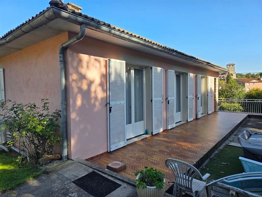 A vendre, cause mutation, maison de maître 200m2, de plain-pied avec accès par la terrasse, entièrement rénovée avec beaucoup de goût, refaite à neuf en 2023 : électricité, plomberie, isolation enduit extérieur, chauffage pompe à chaleur gainable chaud/froid, poêle à bois avec distribution dans les pièces, portail électrique solaire, menuiseries Pvc double vitrage avec volets roulants électriques solaires neufs,. Chauffe eau thermodynamique, garantie décennale. - 3 grandes chambres entre 15 et 16m2 chacune dont une chambre parentale avec douche italienne, Grand salon salle à manger de plus de 37m2, Cuisine équipée et aménagée. 2 toilettes. Salle d'eau avec douche Italienne. +Dépendance = studio neuf, 20m2. Rapport de location environ 300€/semaine durant la saison de cure thermale. Sous sol aménageable entièrement sous la maison 85m2 (actuellement Garage 2 vl + rangement avec point d'eau). Menuiseries Pvc double vitrage + volets roulants solaire. Panneaux photovoltaïques 6Kwc, avec contrat de revente jusqu'en 2043, du surplus, contrat cessible. Terrain de plus de 3672m2 entièrement clôturé avec poulailler, arbres fruitiers (prunes, cerises, coings, pommes, noix, raisins, pêches, oranges) sans vis à vis, entouré de terres agricoles qui ne seront jamais constructibles. Récupérateur d'eau 5m3 Piscinable. Située à 10-15 minutes à pied du centre de Firmi, bus de ville et scolaire juste à côté. Écoles et collège, pharmacie, poste, coiffeurs, boucherie, bar, restaurant, épicerie, tabac 5mn en voiture Lycèe à 10mn en voiture Située à 20 min de l'aéroport de Rodez. Plus de photos sur demande. Nous refusons les agences. Dpe : C Ges A (factures Edf peuvent être fournies, avec la revente du surplus, très proche de zéro) Le Dpe sera refait pour la vente avec une amélioration de ce dernier (B et A) Fort potentiel Secteur Calme sans vis-à-vis Taxe foncière 1587€ 339000€ hors frais de notaire. 349000€ si vendue entièrement meublée Nous Ne Voulons Pas De Contact D'agence, si cela peut intéresser un de vos clients vous lui faites signer un mandat de recherche.