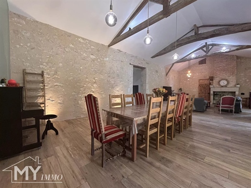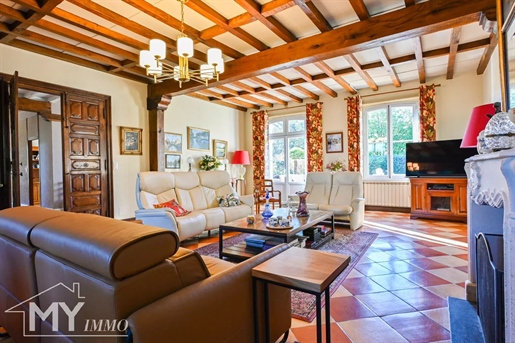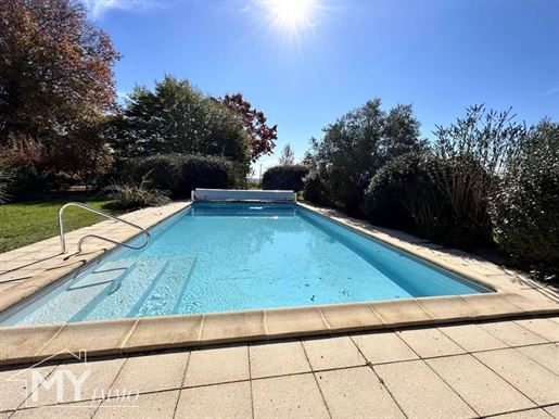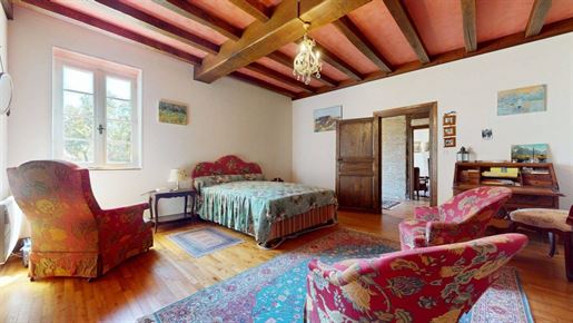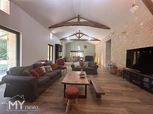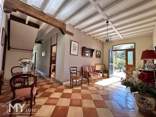 Nichée au bout d'une grande allée arborée, cette propriété pleine de caractère vous accueille dans un parc paysager de 6000 m², entièrement clos, avec piscine et arbres matures. La façade en pierre et les volumes généreux offrent un cadre de vie aussi chaleureux qu'élégant.