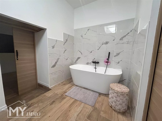 - Night side: On the left of the ground floor, you'll find a study, a bedroom, and a full bathroom. A grand wooden staircase leads upstairs to three additional bedrooms, a second bathroom, and an alcove opening onto an independent bedroom, another bathroom, and a large unfinished space ready to be transformed into whatever you imagine - a master suite, studio, or playroom.