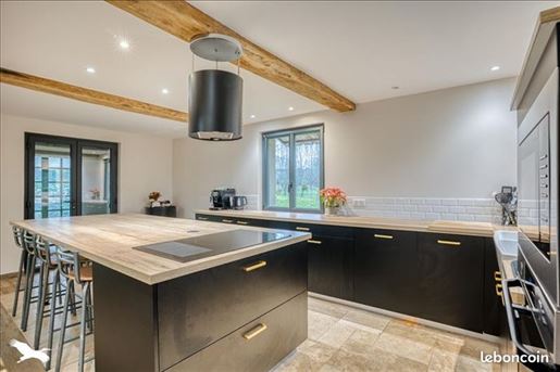 - Côté jour, à droite, deux belles portes en bois s'ouvrent sur une pièce de vie lumineuse de 65m² avec cheminée, cuisine ouverte, et un jardin d'hiver baigné de lumière de 30m², idéal pour recevoir ou simplement profiter du calme environnant.