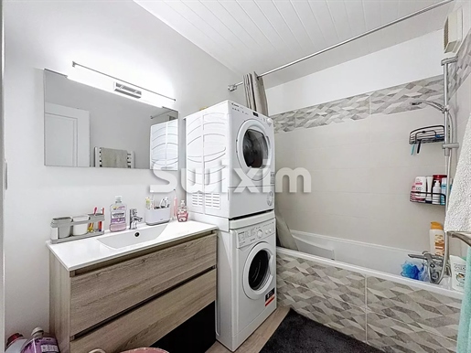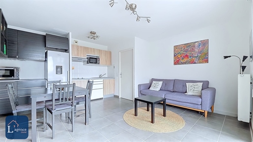 Dès l'entrée, un placard intégré optimise l'espace et donne accès à l'ensemble du logement. Le séjour, très lumineux et fonctionnel, s'ouvre sur une cuisine aménagée et équipée, avec un accès direct au balcon de 8,30 m² orienté sud-ouest. La chambre, confortable, dispose elle aussi d'un placard intégré. Une salle de bains bien pensée intègre vasque, Wc et lave-linge. Le bien est complété par une cave privative de 3,10 m² et un garage fermé en sous-sol, accessible via l'ascenseur de la résidence.