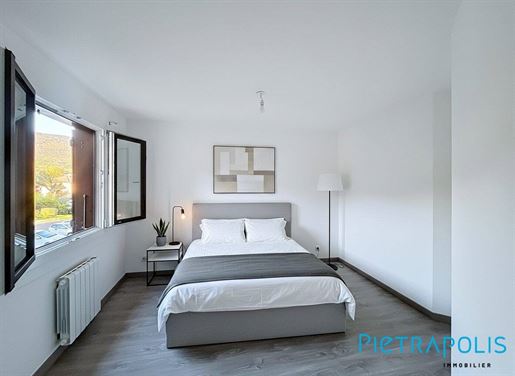 Le balcon offre un bel espace extérieur pour profiter du calme et de la vue sur les montagnes. La résidence, récente et bien entretenue, est sécurisée par un portail motorisé.