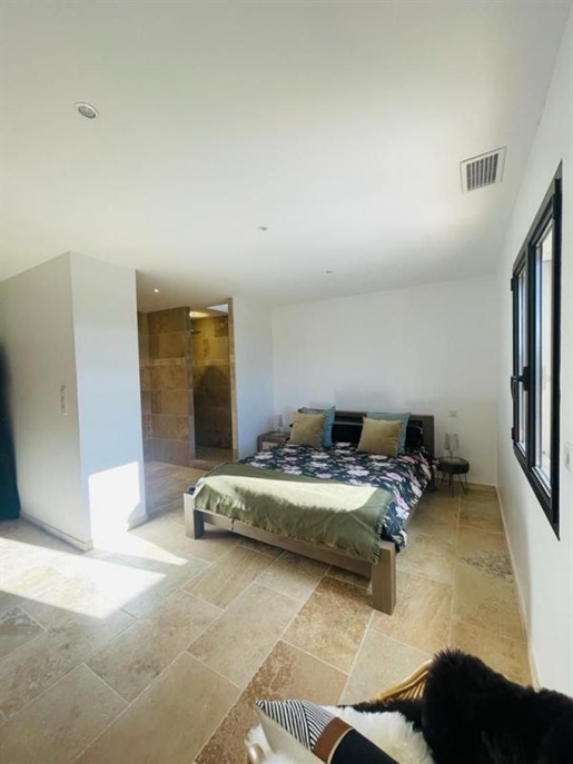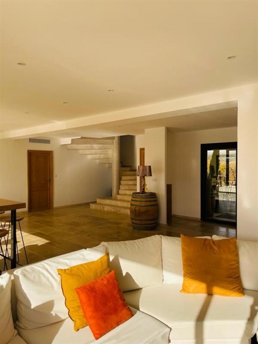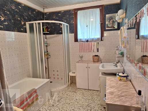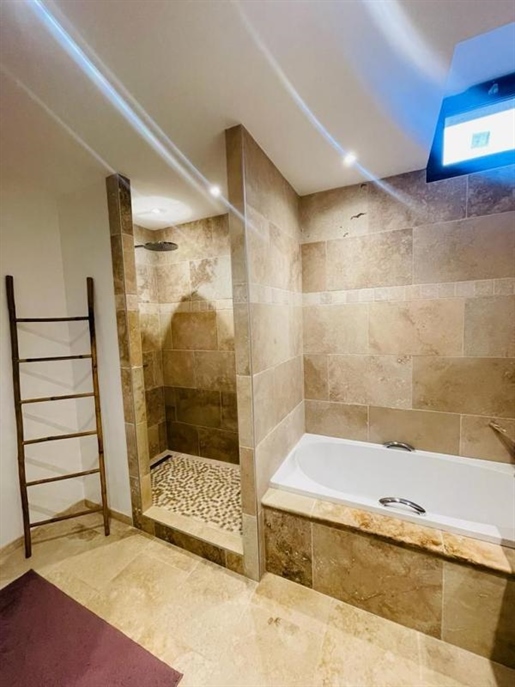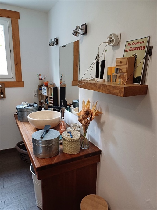 Une Maison Principale de 161 m2 qui a été rénovée dans un style design et chaleureux, avec des matériaux nobles. Elle est très bien isolée grâce à des menuiseries en bois et aluminum. Le chauffage est au sol dans le salon, puis par radiateurs grâce à une chaudière performante au bois.