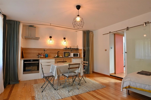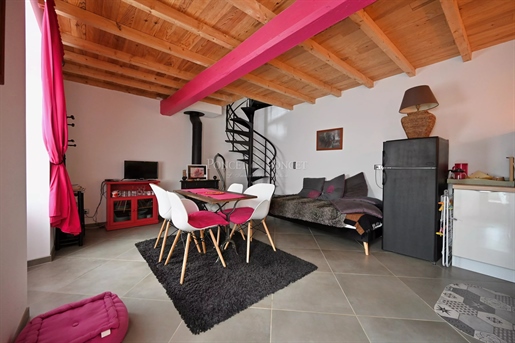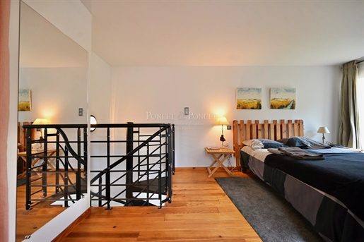1Er Étage : Le salon du rdc mène à une mezzanine qui dessert la chambre principale, une salle de bain et un wc. L’Ensemble est particulièrement lumineux.