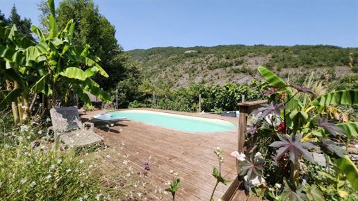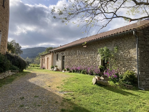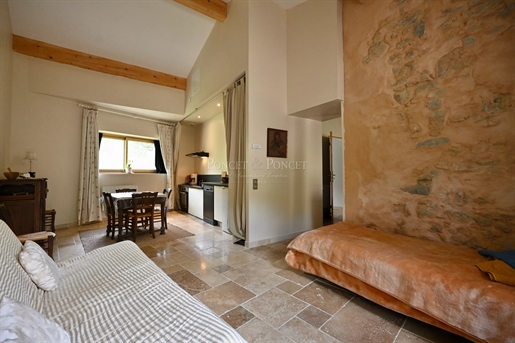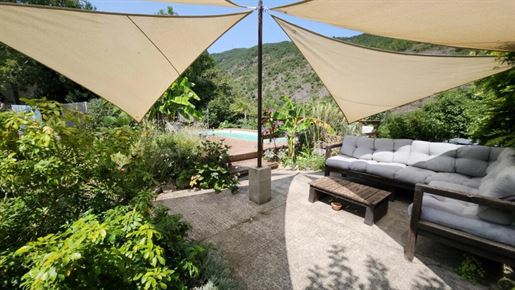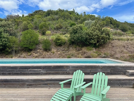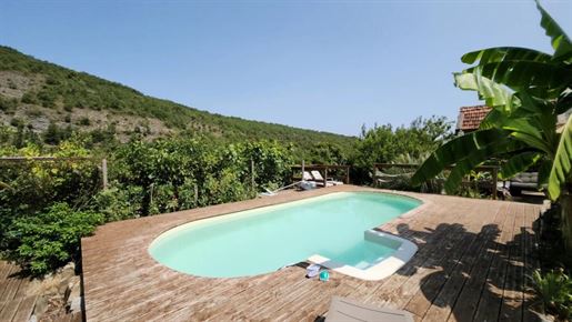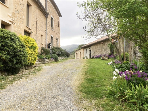 Situation : Dans une vallée des montagnes qui se situent à l’Est de Limoux, à environ 300 mètres d’altitude, au bout d’un chemin sans issu, un grand parking ombragé nous fait découvrir un environnement particulièrement bucolique, sauvage et préservé. L’Impression qui domine est le calme et la sérénité. La propriété se trouve à quelques minutes d’un village où il y a quelques commerces de proximité, ont est à 20 mn de Limoux, 25 mn de Carcassonne avec son aéroport, 1h15 des plages de la Méditerranée, et 1h20 de l’aéroport de Toulouse