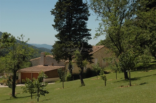 TERRES : Les 180 ha sont d’un seul tenant, entièrement libres de tout fermage, et constitués de 40 ha de bois qu’on pourrait exploiter et de 11 hectares de prairies, le solde sont des landes. Les montagnes alentour s'élèvent à 600 m d'altitude. On y trouve de nombreux arbres fruitiers et des oliviers. La permaculture y est développée, la nature très bien préservée. La faune et la flore sont très présents, on peut apercevoir des aigles, des chevreuils, des papillons à foison…