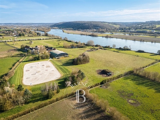 Propriété située sur l'axe Paris-Normandie, à 1h de Paris (1h25 de Roissy Cdg et Orly) et à 45 minutes de Rouen. Cette propriété pleine de charme et d’authenticité propose, avec une vue imprenable sur les prairies et sur la Seine, une surface de 25 hectares d'un seul tenant, accueillant une maison principale, une maison d'amis, un appartement pour le personnel, une grange et un ensemble d'installations équestres (barns, manège, carrière, piste en herbe...), pouvant se projeter sur une activité équestre ou bien sur activité évènementielle, et pourquoi pas les deux!